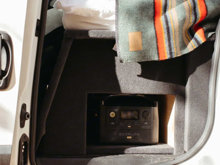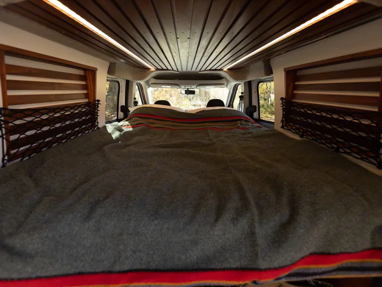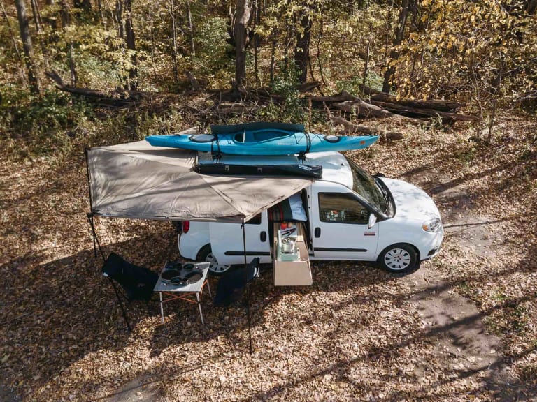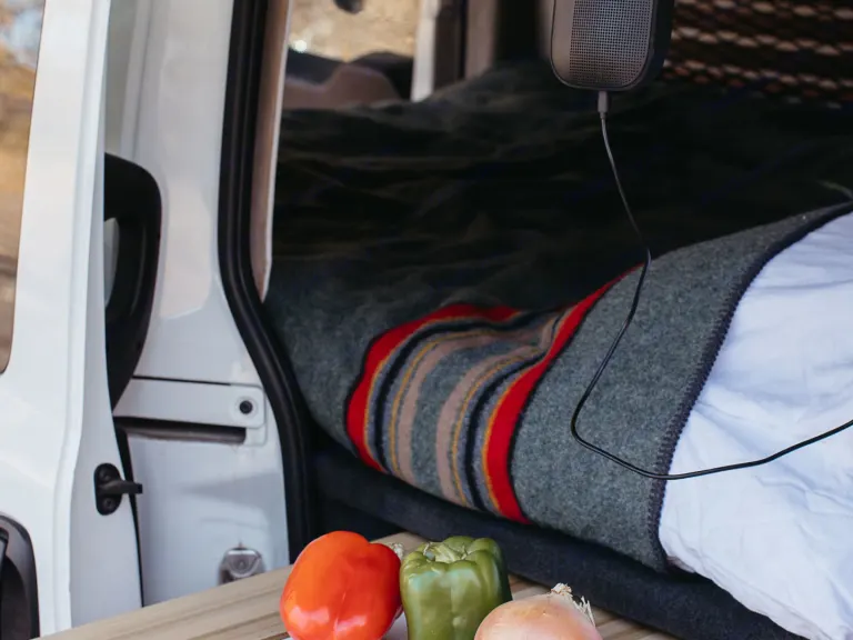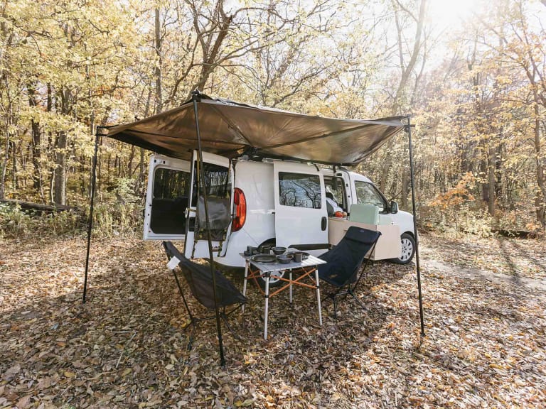 The V-1 is a Ram Promaster City built out with a cozy sleep space featuring a full-sized organic latex mattress, a kitchen and pantry pull-out drawer complete with a two burner stove, cookware, and dinnerware, plenty of storage, built-in power supply for all of your power and recharging needs, and a powered cooler. What's includedThis rig comes complete with fresh linens, comforter, and wool blanket for those cool nights.The kitchen features a two burner stove, with two 1lb fuel canisters, stainless pot and pan set by Stanley, enamel dinnerware set and silverware, cutlery by GSI Outdoors, cutting boards, kettle, and tea pot. Each rental also comes with a free Fernweh Van Co. bottle opener that is yours to keep, and a variety of TeaSource Teas to enjoy while on your journey.Enjoy 69 sq feet of covered space around the V-1 from the rack mounted Rhino Rack Batwing Compact. You can do this by making use of the included two camp chairs and camp table, perfect for your meals, reading, or sitting back to enjoy a beverage in your downtime.Keep perishables and your brews cold using the Dometic 36L powered cooler.This van features plenty of outlets to keep your electronics charged, thanks to the EcoFlow River Pro power supply which will automatically recharge as you drive, and can be supplemented with solar while you are parked for an extended period of time. RecommendationsThis van does not feature an additional heater beyond the built-in one in the cab, so a winter adventure in Minnesota might not be the best fit. But with its great gas mileage you can head west or south, save money by avoiding flight sand hotels, and camp wherever you please. There's no better time to explore the many gorgeous national parks in Utah, Arizona, or California.