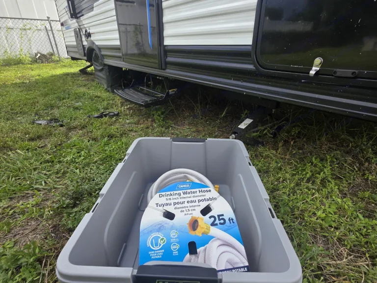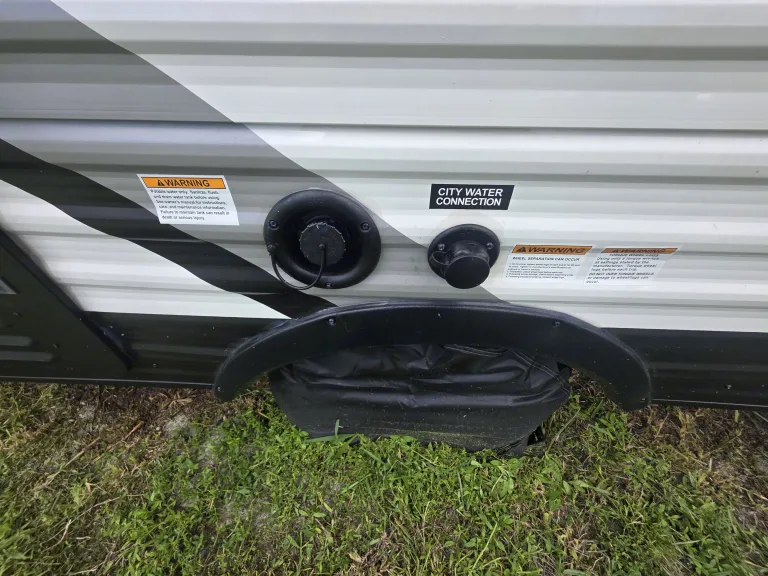 -Utility Essentials — Leveling blocks, water hoses, black/gray connections, wheel covers