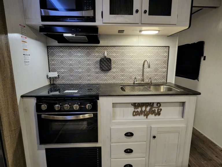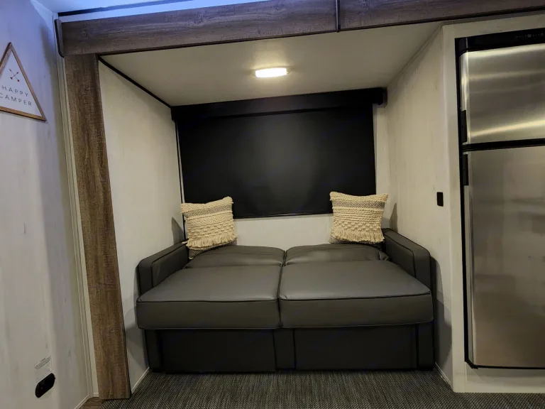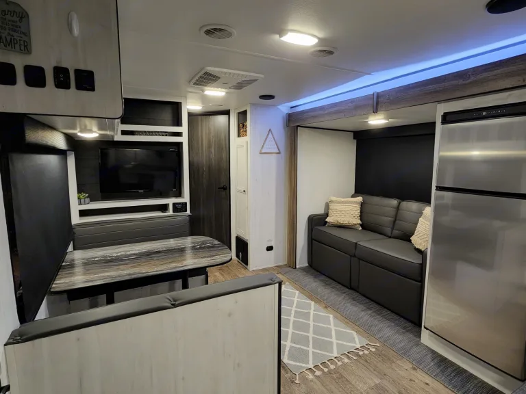 2022 travel trailer ready for all your vacation needs. Queen bed with memory foam topper, bunk beds, couch and dinette fold out into beds. Furnished with pots, pans, dishes, cooking and eating utensils, coffee pot, electric griddle, and fitted sheets.Pickup and drop off times are flexible.What's includedFitted Sheets, 2 camping chairs, griddle, pots and pans, dishes, coffee pot, cooking and eating utensils.Other things to noteMinimum renter age of 25
