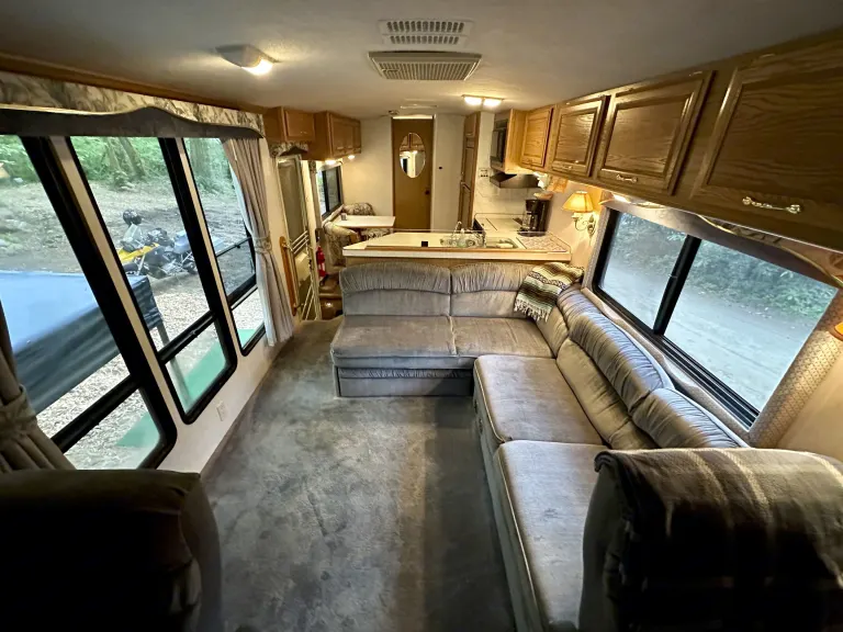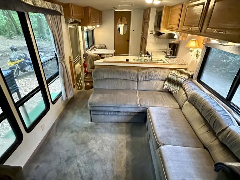 What's includedClass A super comfortable and large rig. Two brand new electric bikes (see photos) and fully stocked with electric bicycles with knobby tires, as well camping gear, tables and chairs and much more.