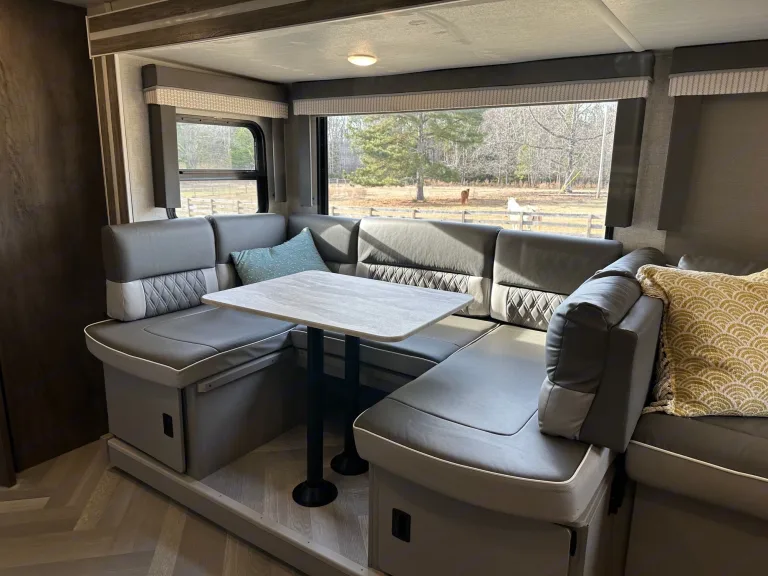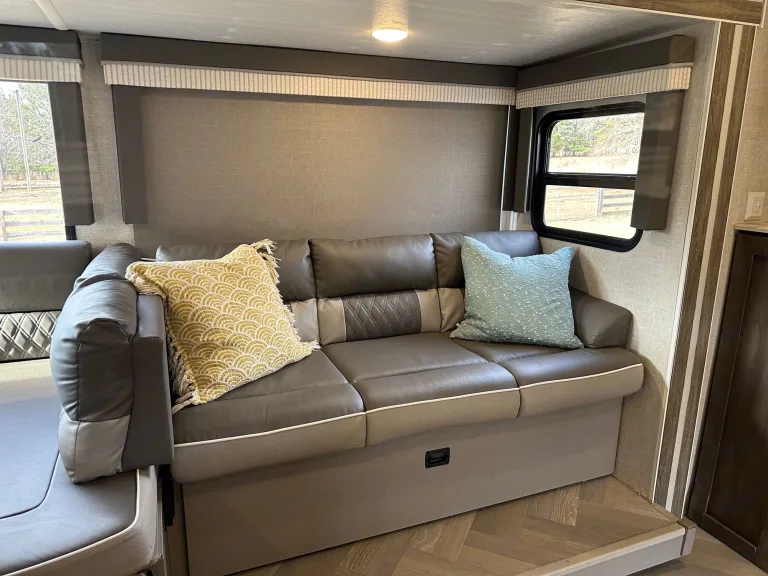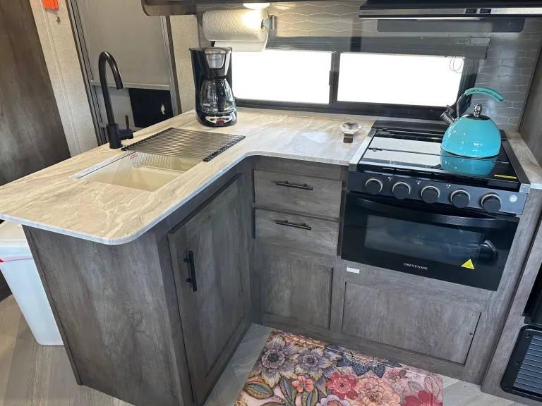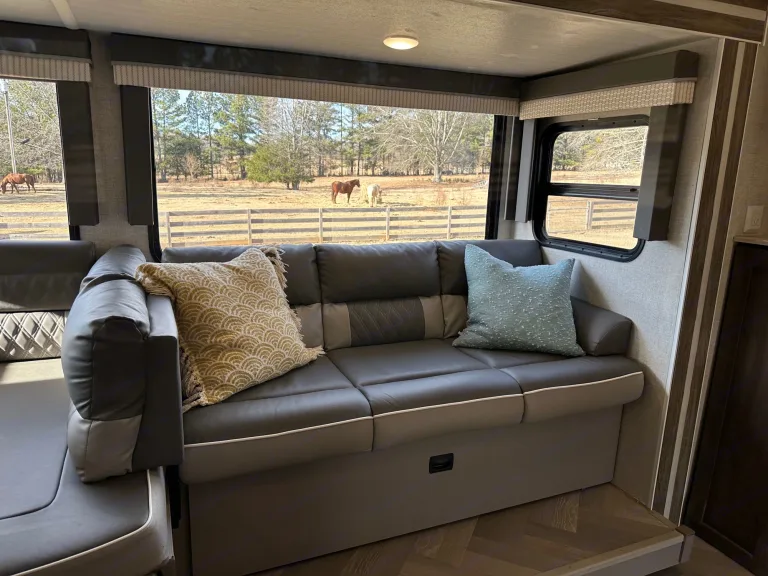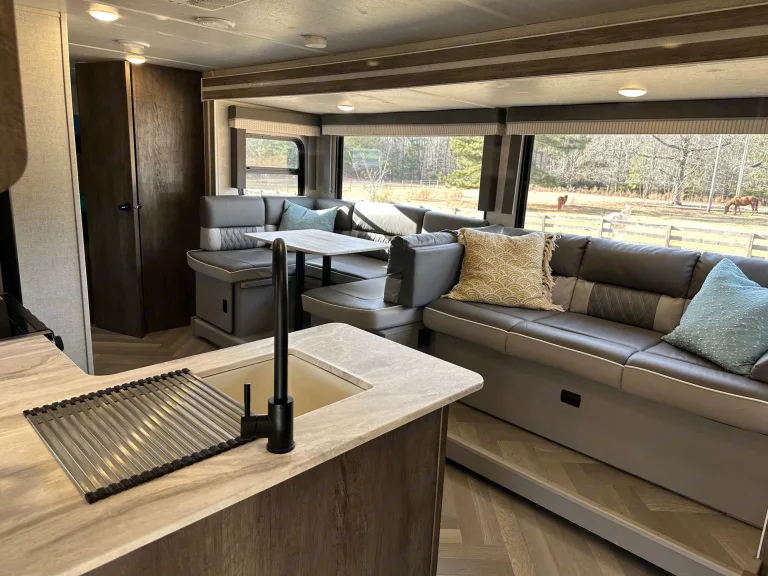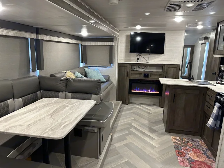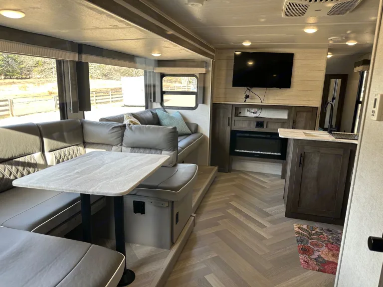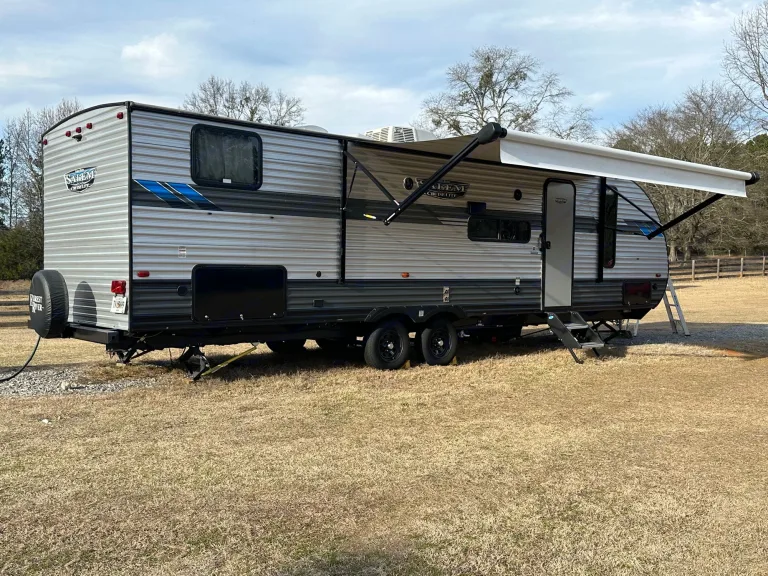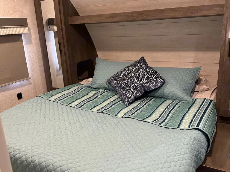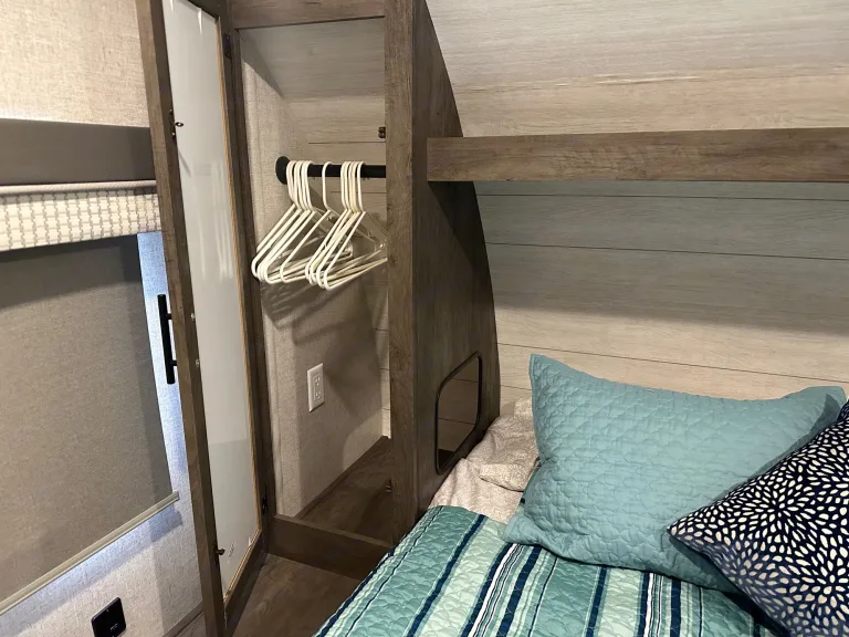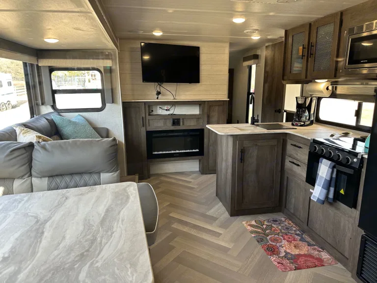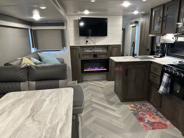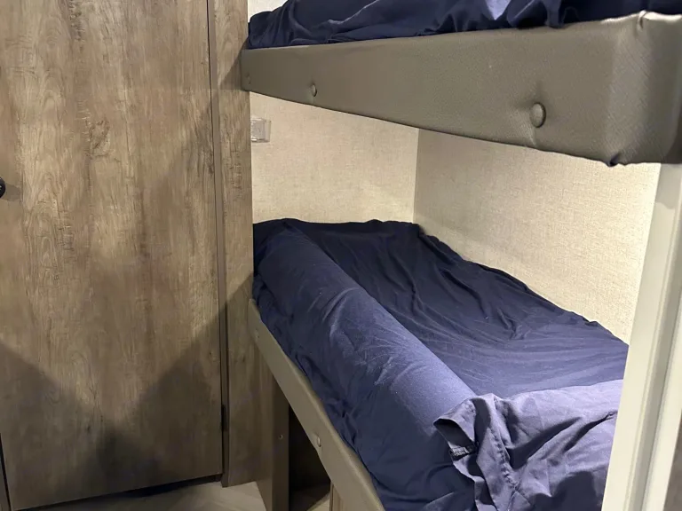 Spacious, clean and comfortable! Perfect for a large family or group! Separate bunkroom has 4 individual bunks and a closet... perfect for the kids! Queen size bed in the master with storage on both sides. Bed lifts up for easy access to the pass through storage. Huge panoramic windows allow you to enjoy the view even from inside. Or, you can pull down the shades for privacy any time. Cozy up beside the electric fireplace , which also provides enough heat for the whole camper. The kitchen features an oversized refrigerator, 3 burner propane stove, gas oven and microwave. Automatic awning and back slideout. Outdoor kitchen features mini fridge and gas griddle.What's includedPillows, bed linens, bathcloths, towels, hand towels, rugs, broom & dustpan, silverware, plates, bowls, pots and pans, cookie sheets, cooking utensils (including retractable smores sticks), coffee pot, kettle, dish drainer and cutting board.The storage containers under the sofa have bubbles, sidewalk chalk and youth lifejackets. The cabinet under the T.V. has various games for the whole family to enjoy. There is a folding table in the pass through storage under the queen bed. Tablecloths for this table are located in the mini kitchen.RecommendationsHard Labor CreekOther things to noteNo smoking or pets inside the camper. Delivery only. We do not allow others to tow our rv at this time, but we will deliver for a delivery fee.
