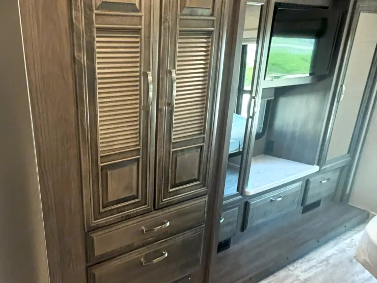 Our newest addition, new and beautiful. With 3 slide outs their plenty of room and a full kitchen. Can sleep 10 comfortably and has 1 king size bed. Go on an adventure in comfort and style.