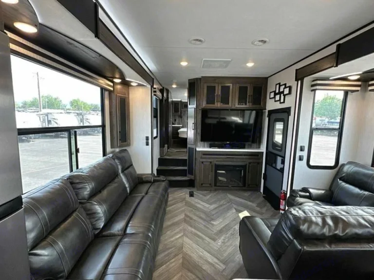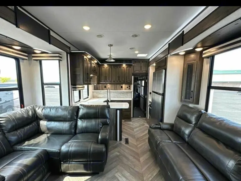 This toy hauler has everything you need for a weekend of tailgating for the big game, for race week or just hanging out with the family. The garage has plenty of room to bring your golf cart or the kids bikes. You can enjoy amenities such as a full size fridge, 2 bathrooms, a full size closet in the master and interior and exterior speakers. This camper has 3 slides, 3 awnings and even an on-board generator. You'll feel right at home in this camper.