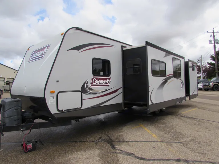 2013 314BH Features and OptionsColeman Bunkhouse Travel Trailer w/Rear Bunk Bed Slideout, 3rd Bunk Above Wardrobe, Closet, Bath w/Private Entry Including: Tub w/Skylight, Toilet & Sink w/Overhead Storage, Oversized U-Shaped Dinette & Sofa Bed Slideout w/Overhead Cabinets, Refrigerator, 3 Burner Range, Dbl. Kitchen Sink, Ent. Center, Front Queen Bed w/Shirt Closets Above Nightstands, Storage Plus, Overhead Cabinet, Rear Outdoor Kitchen w/Cabinet, Sink, Refrig. & Slideout Grill & Much More!What's includedTrailer is packed with (1) 6x4 folding table, (1) 4×4 card table, fresh linens for queen bed, pots & pans, dishes and silverware, 4 lawn chairs, camp stove, portable BBQ, outdoor carpet, propane tank, hot dog sticks, ax, cooler (if needed) and other miscellaneous camping goods upon request. 3500 Inverter available for an additional day rate.RecommendationsThis unit is 35' long so needs a large camp site when booking. Used mostly in open area's in west country. We have camped almost everywhere without issue.Other things to noteHave a good time!! Unit is set up for ease of use.
