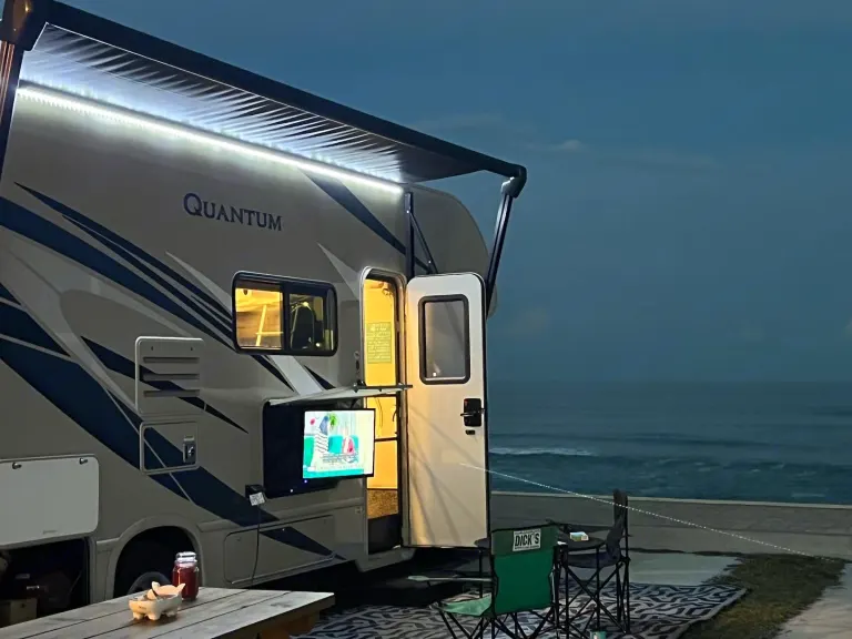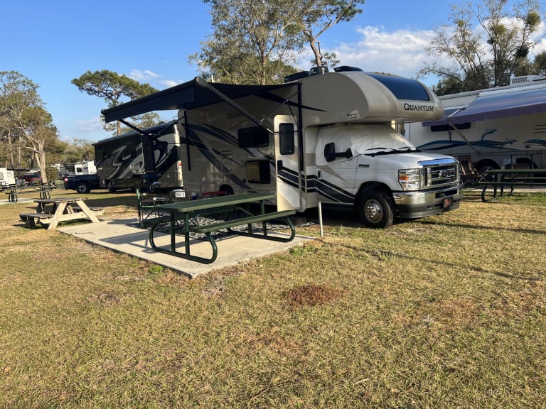 The Class C Thor Quantum is ready to pick up and go anywhere. It doesn’t take long to set up and break down. It’s a smooth drive up to 68MPH. It has everything you need with full hook ups or no hook ups. That’s up to you!What's includedOur Class C is equipped with everything you need to cook inside and a small charcoal grill outside. The microwave works as a convection oven. There are three TV’s. There is a curtain that gives the main bed privacy from others. There is a curtain on the overhead top area to provide more privacy. We have toppers on all beds to make them more comfortable. We also have “hotel” like linens for your stay. While renting you can use the four fishing poles with tackle, four chairs, two tables, huge outdoor rugs, and a few flags to fly if you’d like. There will be a fire pit that hooks to the propane available for use. The outdoor tv has its own bar speaker. The stereo inside has two zones for speakers. There are instructions on how to use most things in case there are questions that come up. This camper is awesome for a couple or people with kids and a pet as well. RecommendationsThis rig has been from the Florida/Alabama line, Key West, and many beaches and wooded areas in between. This is for the person who says “I’ll go anywhere with you”.Other things to noteI am willing to drop it off somewhere, set it up, and then break it down if it’s in central Florida. If you want to rent this, I will be able to go over everything with you, and you get a bunch of notes. Sometimes RV’s can feel overwhelming, but it’s all about checklists and procedures. You will be fine and have a fun trip!No smoking!