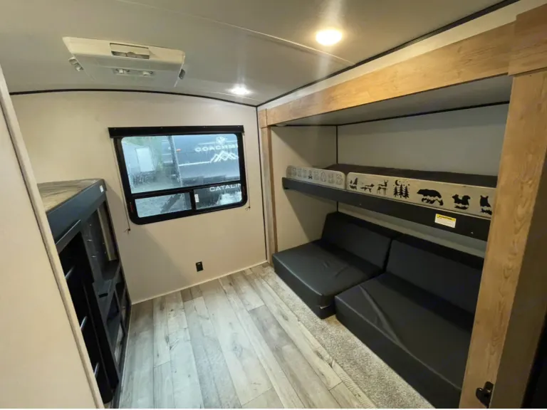 Meet Trailer Swift, our 2022 Keystone Springdale 303BH and the true pop star of the campground. As parents to two small humans with big energy, there was only ever one name that could keep up — and yes, she shakes it off down the highway like a champ.She rolls in style with double-over-double bunks, ready to host kids, cousins, tagalongs, and that one friend who “forgot” to reserve their own site. Meanwhile, the grown-ups can retreat to their private primary bedroom — a sacred space with a door that closes and dreams of sleeping past 7 a.m.The super slide is a scene-stealer, transforming the living area into a multifunctional arena: dance floor by day, wrestling ring by afternoon, and a full-blown snack attack zone by night.Outside, the kitchen reigns supreme, mostly to keep the bacon smells (and pancake mishaps) out in the fresh air. Inside, the U-shaped dinette and squishy sofa are ideal for meals, movie nights, or fierce card games where alliances are formed and betrayed before bedtime.Rain or shine, Trailer Swift is our rolling realm of cozy chaos — where memories are made, naps are sacred, and idle threats of “turning this camper around” echo into the sunset.What's included• The RV features a fully stocked kitchen with coffee maker, pots, pans, dishes, silverware, cups, utensils, cutting board, and mixing bowls, plus dish soap, sponges, towels, paper towels, starter trash bags, and basic seasonings. Bedding is provided on bunks and the main bedroom, with 6 bath towels. The bathroom includes RV-safe toilet paper, hand soap, and a small shower mat. For convenience, camp chairs, a broom and dustpan, a flashlight, and games are included. Recommendations• If you are booking this for a campground on Cape Charles/Eastern Shore, please add the toll add-on.Other things to noteNo Smoking: Smoking is not allowed inside the camper. Help us keep it clean and fresh for all guests!Dogs Only (No Cats): We welcome dogs on a case-by-case basis! If you'd like to bring your pup, please send us a message with a bit about them (breed, size, and personality). Limit of 2 dogs, and approval is required before your stay.