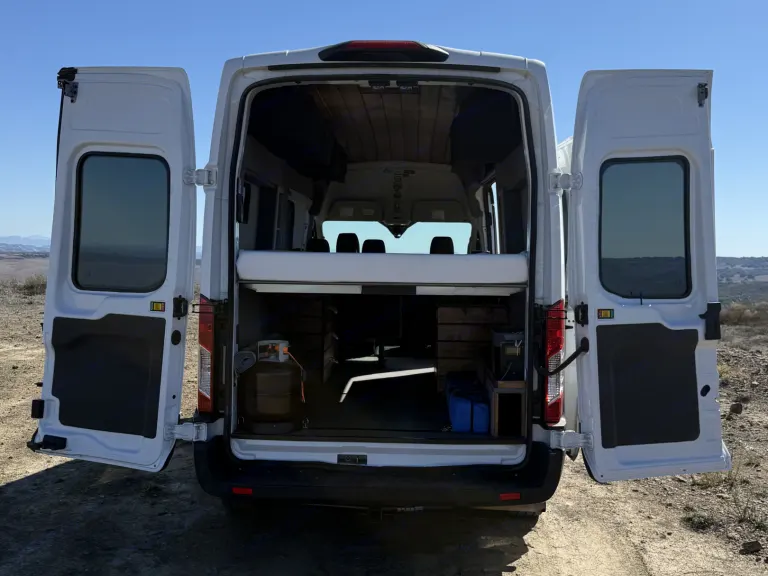 Meet The White Lotus, a 2022 Ford Transit equipped with all wheel drive which provides better traction with rain, mud or snow. It also has an eco mode which will help save on gas milage for those extended trips. She only has around 35,000 miles so don't hesitate to take it where ever your adventure leads you. She is a great weekend warrior for me and we have spent many nights in the back country up and down the 395, all over Arizona and Utah.I made the van to be very basic and easy to use. No "control panels" to mess with or grey/ black tanks to empty etc.