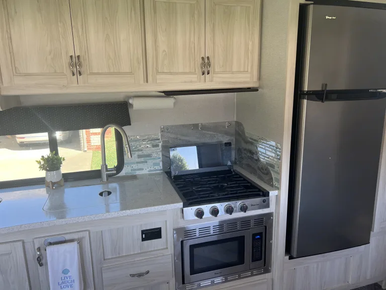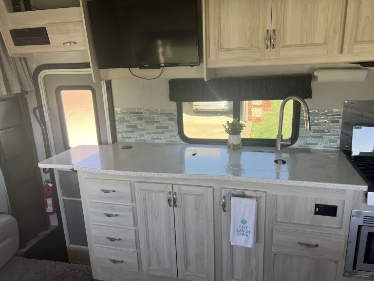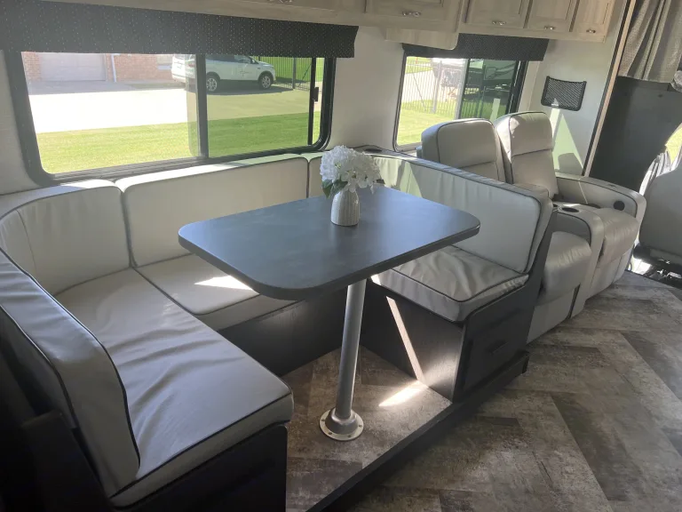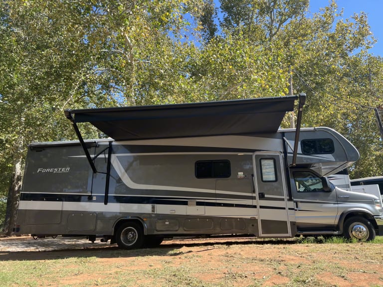 Why fly when you can motorhome? Because it’s more fun! We would like to share the joy with other families and closest friends. This is our family’s favorite thing to do. We want to provide the best, cleanest and most comfortable motorhome on the market. The motorhome is 32’, has 2 slides and a 15’ 6” awning. Stairs are enclosed.Free 5G Cellular WiFi and 3 Roku Sticks! Just log into your favorite streaming services! The Motor Home also has a Wineguard Hdtv antenna for getting those over the air channels.Ducted Hvac throughout. Upgraded stainless steel appliances, large refrigerator and lots of storage! Whole house entertainment, outdoor speakers, outdoor TV, 1 TV inside the main area with surround sound and 1 TV in the master bedroom. Sleeps 6-8 comfortably. Queen size bed in the master and also in the Cabover. Dining table converts into a full bed. Theater seating with adjustable foot rests recline all the way for even more sleeping options! 8 total seat belts. 4-Point hydraulic auto-leveling system. 4.0 KW Onan Microquiet generator.Powerful Ford E450 7.3L V8 for easy driving. Back-up camera/side view cameras with monitor, Lane detection monitoring system. Includes Bilstein Shocks for improved handling and consistent performance, while reducing sway and bounce. Hellwig RV sway bar which improves traction and cornering. No more white knuckling! Firestone Ride-Rite air springs provide improved ride, and a better way to balance loads.
