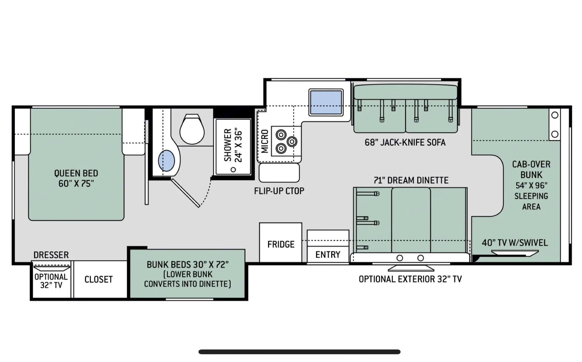 - Fresh water: 40 gal