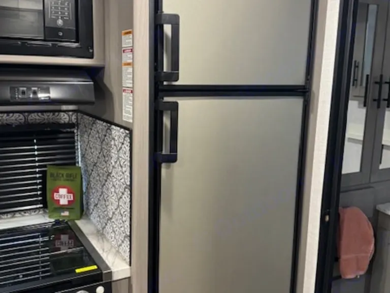 • 3 burner stove, microwave, oven, & refrigerator with freezer