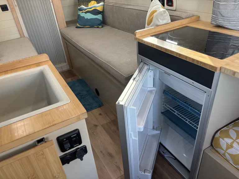 Enjoy robust solar power, warm indoor showers, and a stocked kitchen anywhere.