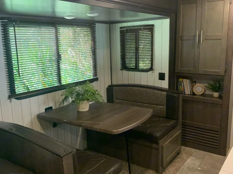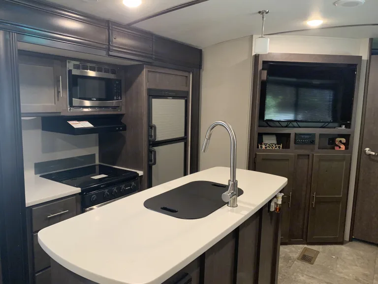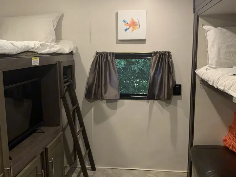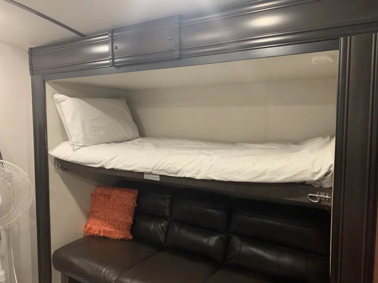 Welcome to our charming, (extremely clean), roomy camper designed with the whole family in mind. We live in Northeast Alabama and started making memories last year in April 2021. We have enjoyed the beach, the mountains, local close to home spots, and several short drive trips.We have three kids and a puppy, and still have plenty of room to invite my parents and siblings often. We have 6 total beds and this camper will sleep 8-10 comfortably depending on child-adult ratio.Our camper has most everything you would need to take a memorable trip. We have ONE & A Half Baths to make your stay even more comfortable!!! It has a fully stocked kitchen, large pantry storage, attachable propane grill, outdoor kitchen with second fridge, sink, and storage. Outdoor hose hookup which is great for rinsing sand, washing the pups etc. Our RV has three TVs one located in the bunkhouse, living and master. Although we hope you don’t have time to watch tv on your trip ha ha. We provide linens, towels, and kitchen towels. We also provide paper towels & toilet paper and necessary tank additives.We hope you will take this extremely nice camper on your next trip and make some really fun family memories just like we are!What's includedWE HAVE ONE AND A HALF BATHS!!! Also a fully stocked kitchen with appliances. Camping chairs, kids camping chairs, outdoor prep table, attachable propane grill, all hooks ups and hoses. Outdoor kitchen with two extra burners, second fridge and lots of storage. Games and much more.RecommendationsWe have been close to home as well as a bit further. We have enjoyed locations in AL, GA, TN, & FL so far. Noccalula Falls in AL and Gatlinburg have been some of our favorites places we’ve been. The place we stayed at the beach was also GREAT!Other things to note•Please no smoking! We strictly enforce a NO smoking policy. If smoke is smelled there is a risk of losing your deposit.•Welcome pets, the only thing we ask of pet owners is to please clean up after them and do not allow them on the furniture without a protective cover or blanket.•We provide a camping checklist of things/ideas you might want to bring along to make your stay the most comfortable it can be. This can take a lot of the guesswork out of your trip. We also provide a “check-off” list for must do’s while using our camper. Such as…make sure to shut the vents before traveling or reminder to bring the slides in and turn off the air or add the tank additives etc. things like this so you will be able to have as worry free experience as possible while on vacation.•BEFORE BOOKING PLEASE insure your towing vehicle is compatible with the weight of this camper. (9735lbs)