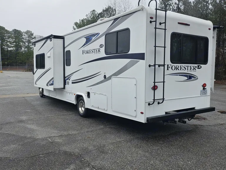 The Forester 3251SLE is a bunkhouse floorplan that sleeps 7 comfortably with a dedicated Kid Zone (fold down bunk, sofa sleeper, and entertainment center), private rear queen bedroom, and bunk over cab. The kitchen offers a corner area to prepare meals with a convection microwave and recessed three-burner range. The residential refrigerator has plenty of room for provisions, and the U-shaped dinette is the perfect spot for family dining, with a slideout for extra space. The bathroom is equipped with a 24" x 32" skylight shower, commode, sink, and medicine cabinet, plus additional storage cabinets just outside the door. This model is built on a Ford E450 chassis.
