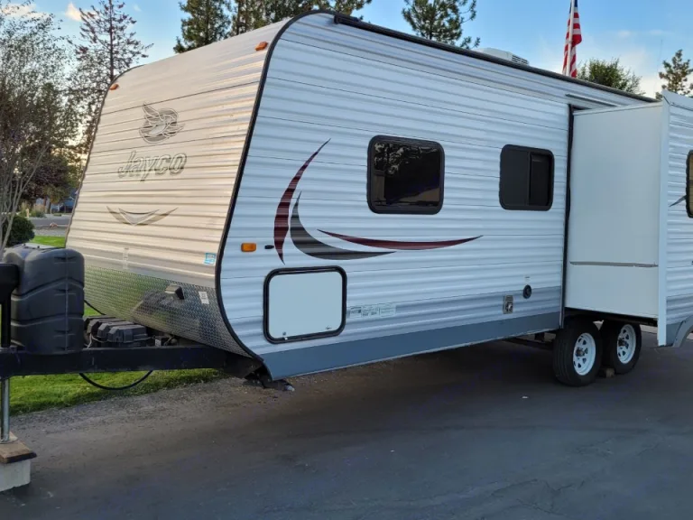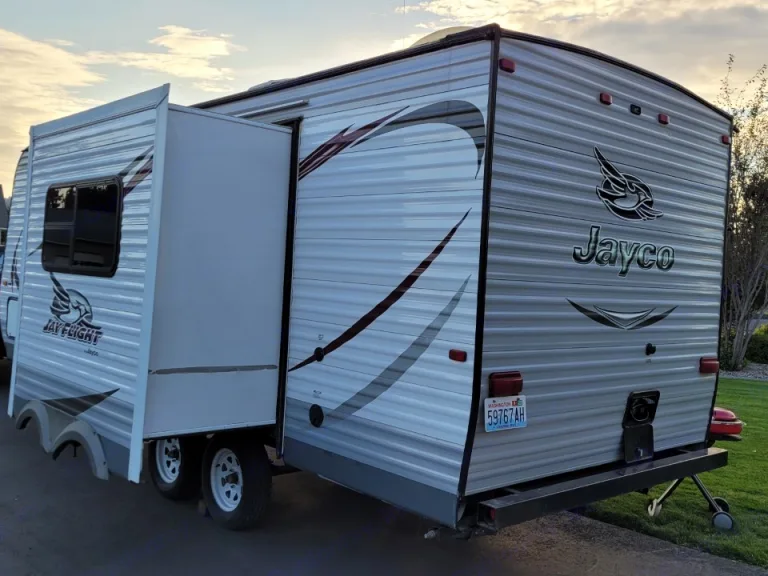 Immaculate Jayco Jayflight travel trailer. It is a half ton towable. Dual axle with electric brakes. This beautiful trailer will sleep 6 people. It has a super comfortable upgraded queen mattress, sofa pull out and dining pull out for additional sleeping accomodations. The bathroom has a bathtub/ shower combo. Plenty of storage inside and out. Brand new electric awning. This little gem is all ready for your travel adventures. Your tow vehicle must have a 7 pin connector with a working brake module. We will include leveling blocks and wheel chocks.What's included Included with the rental are clean high quality linens for the queen bed, extra cozy blanket, towels and bath mat for the bathroom as well as kitchen towels and washcloths. Cookware,kitchen utensils,reusable plastic dinnerware and cups, sevice for 8. Toaster, Brita water pitcher, Keurig coffee maker with complimentary K cups. We've also included skewers for roasting marshmallows or hotdogs on the fire and, a few games for the family to play. If it's an indoor kind of day there are also movies to play on the dvd/tv combo.It comes with a portable Coleman gas BBQ, limited generator use, 2 camping chairs, outdoor carpet. Almost everything you need to dry camp or set yourself up at a spot with all the amenities.Other things to noteRemember this is a no pet ,no smoking, no vaping rental. Any questions send us a message. This travel trailer is super easy to set up and is just as easy to tow. If you need the unit brought to you we can do that also.