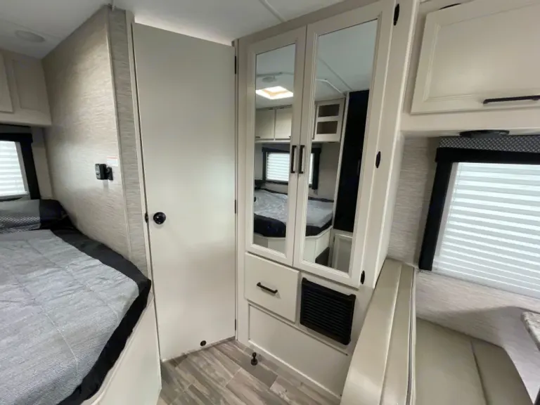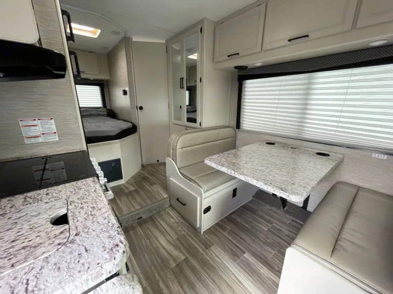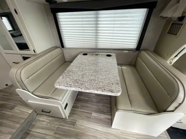 This RV boasts a spacious and thoughtfully designed interior, featuring a well-equipped kitchen, cozy sleeping areas, and a modern bathroom. With ample storage and comfortable seating, you'll have everything you need for a memorable and enjoyable trip. The compact size of this Class C motorhome makes it a breeze to drive and park, while still providing all the amenities you desire.What's includedWe understand the importance of a cozy space, so we provide fresh linens and pillows to ensure a good night's sleep.In the kitchen, you'll find everything you need to whip up delicious meals on the road. Our RV comes stocked with a complete set of utensils and pots, so you can enjoy home-cooked favorites even when you're miles away from your kitchen.With our attention to detail, we aim to make your RV experience enjoyable and convenient. Focus on the journey, and leave the essentials to us. We look forward to being a part of your next great adventure!