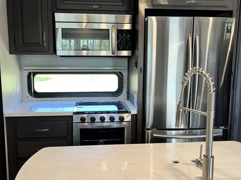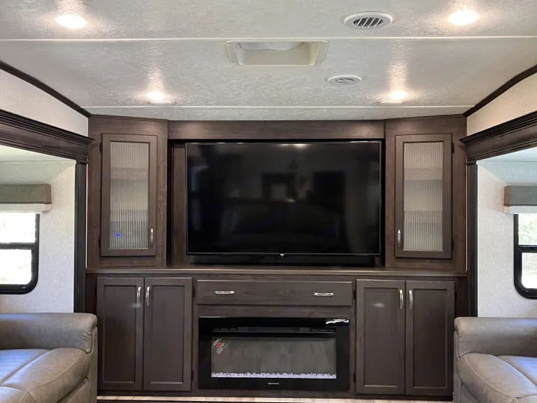 42ft 5th Wheel with Gooseneck Goose Box Conversion. 5 slides, 1 full bath and 1 half bath, front living area, full kitchen, king size bed in the bedroom, 2 full/queen pull out sofa beds and 2 recliners, 2 a/c units, electric fireplace, outdoor refrigerator, tons of storage space. Fully stocked to provide you the most comfortable and hassle free vacation.What's includedComes with fresh linens, stocked kitchen accessories, coffee maker, bathroom toiletries, and cleaning supplies. Outdoor rug, chairs, and a Blackstone table top cooker. RecommendationsGreat Campgrounds in Brunswick County, NC to Consider: