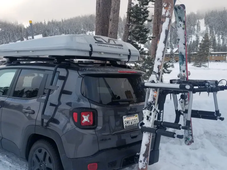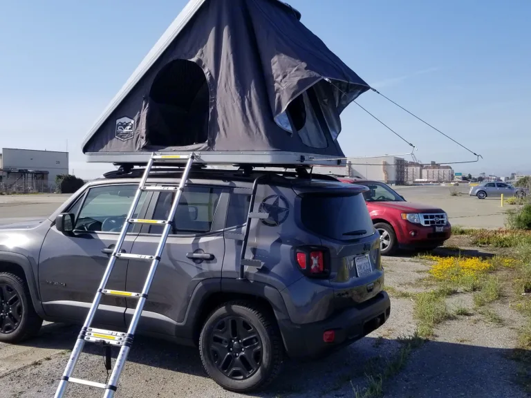 Jeep Renegade Upland with AWD and a roof top tent now available for rent. Fully outfitted for your next adventure. Has dual battery and Dometic fridge, cools to freezing temperatures. Includes charger to keep battery topped up. Coleman stove and 1st propane tank included, as well as cookware and basic dishes. Satellite radio, Bluetooth etc. 1.5" lift kit for a bit of extra clearance! Optional solar panel available, recommended if you are staying put for more than a day at a time.In winter this jeep has snow tires, great for snow camping at Tahoe! One of the very few trucks in the Bay area with AWD and 3 peak rated snow tires. (Not all season.) Fly by chain controls. In winter outfitted with a trailer mount ski rack when requested; in summer with a four bike rack.Great little Jeep for running down forest service roads and camping on BLM land. Get off the grid. Need advice on where to camp? Just reach out to us!What's includedI outfitted this as my weekend toy. I cautiously rent it on Outdoorsy. Please be really careful not to scrape him up, especially when using tent and racks.The built in ladder is useless...except it looks cool and can help you access ladder stored in the tent. Do not use it to climb in and out of the tent.in the tent you will find a ladder bag, with telescoping ladder. Hook it to one of the mounts on either side. You will also find two rods in a long bag. Typically I wont use them...unless its raining. These stick into the two holes in the rear of the tent, and are used to secure the fly. However the rear hatch wont clear them, and I find it blocks the view. Instead I usually just tuck the rear fly up above the windows for improved star gazing!.Please, if at all possible put down the tent when its dry. Moisture in it for a few days can cause mold and mildew. If you can't due to rain, open it to air out as soon as you can. And let us know if it wasn't dry when it was put away. I sometimes won't get to it right away so I can air it out - and mold will cost thousands to fix.If using the fridge, remember it will only run off the secondary battery for a day or two, depending on weather. it will take a few hours of driving to bring it up. I recommend renting the optional solar panel kit..(Listed as as camping gear) Just hook it up to the quick disconnect which I will leave visible by the fridge, and place the panel in the sun. You can also use the battery charger included in the rental. Charger is tucked down with the spare tire. You would have to pull out fridge to access, just be careful removing floor board. Lift slightly and then pull out. Charger plugs into the grey quick disconnect, (Same connector the solar panel uses). Small inverter is in the glove box. It's low output, designed for running laptops etc. When driving you can plug in up front, otherwise when camping plug it into the 12V cigarette lighter adapter next to grey quick disconnect noted above. Also use this outlet for charging phones, iPad etc.If rented as optional bike rack, just be sure to secure your bikes well. I don't want scrapes on my truck!Bring the Jeep back with a full tank to avoid extra charge.That's it. Have fun!RecommendationsThis truck is great for getting out onto BLM lands, and doing some camping in the middle of nowhere. Great on calmer forest service roads. In it's short life, it's spent a lot of time in Tahoe, Stanislaus National Forest (next to Yosemite). Road tripped to Utah, Grand canyon, Bryce Canyon and Zion, Mojave Desert. And of course the California coast.