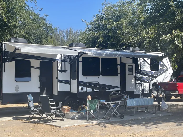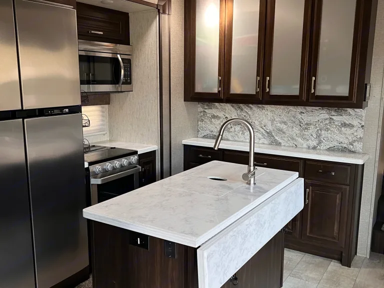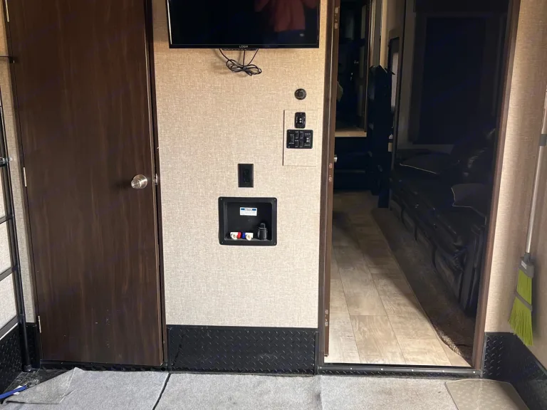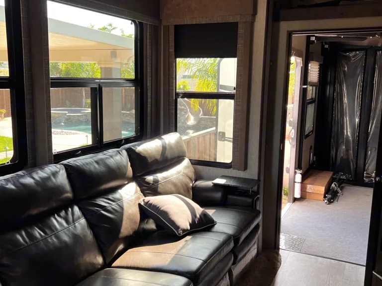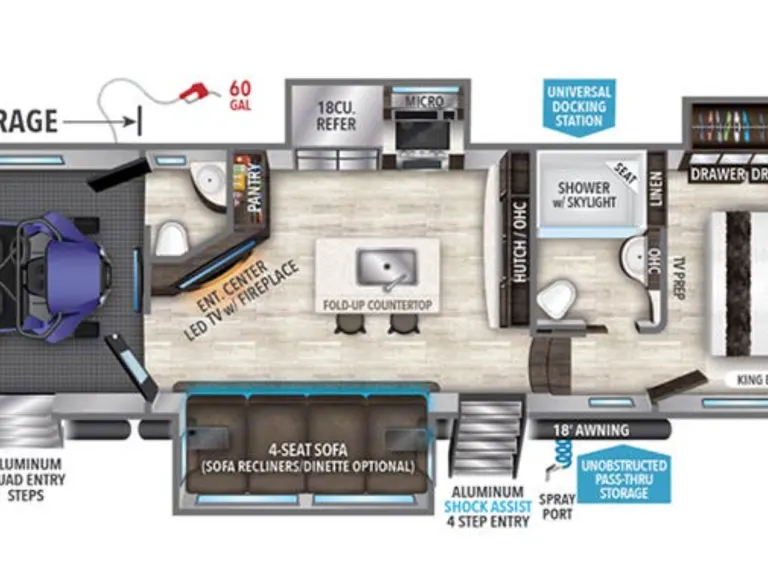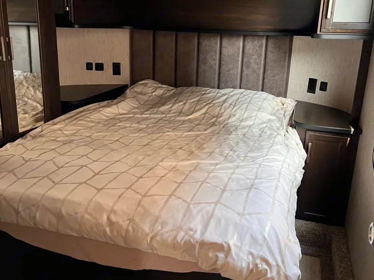 2019 Grand Design Momentum Toy Hauler 351m with large bay door for loading the toys that also serves as a suspended patio. Bring your toys and relax while camping in luxury. This rig is fully equipped with wood cabinets, full size stainless steel refrigerator/freezer, ducted AC units, heater, larger stainless steel kitchen sink, range stove with oven, microwave, private master bedroom, 3 TVs (living area, master bedroom, and bedroom #2), inside/outside surround sound with Bluetooth. Propane grill comes with the rental - just supply your own propane. This toy hauler has lots of storage and cabinet space. Some other specs to consider: requires 50 amp hook up; fresh water tank holds 100 gallons; gross weight 16,800 with 6,800 hitch weight (gooseneck); needs 1-ton truck to towWhat's includedFresh linens, dishes and utensils, hand soap, RV toilet paper, shampoo, bodywash