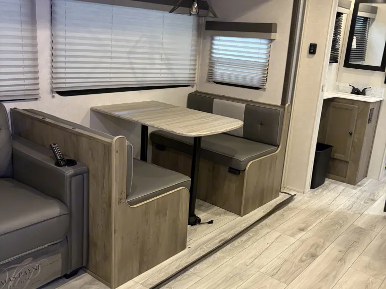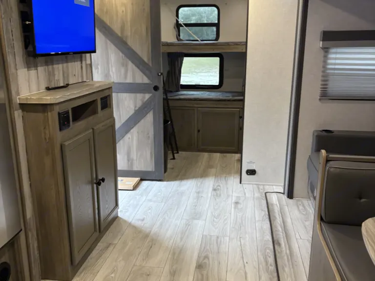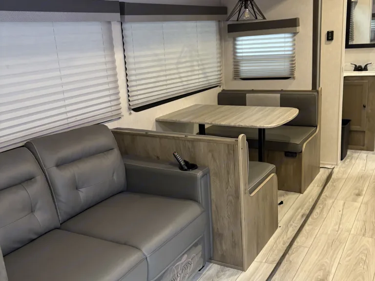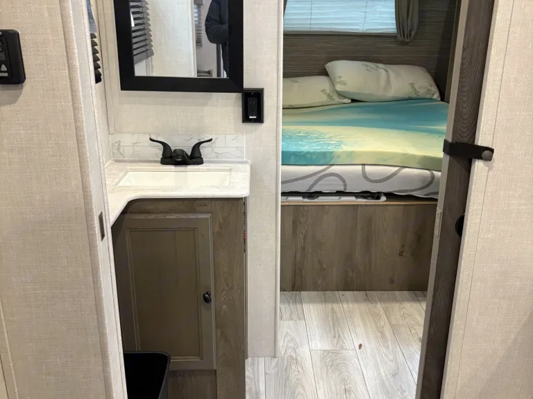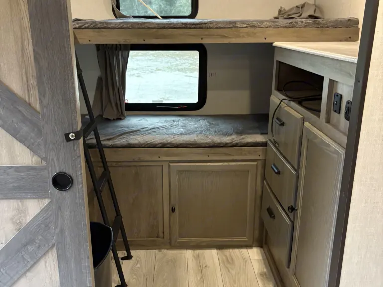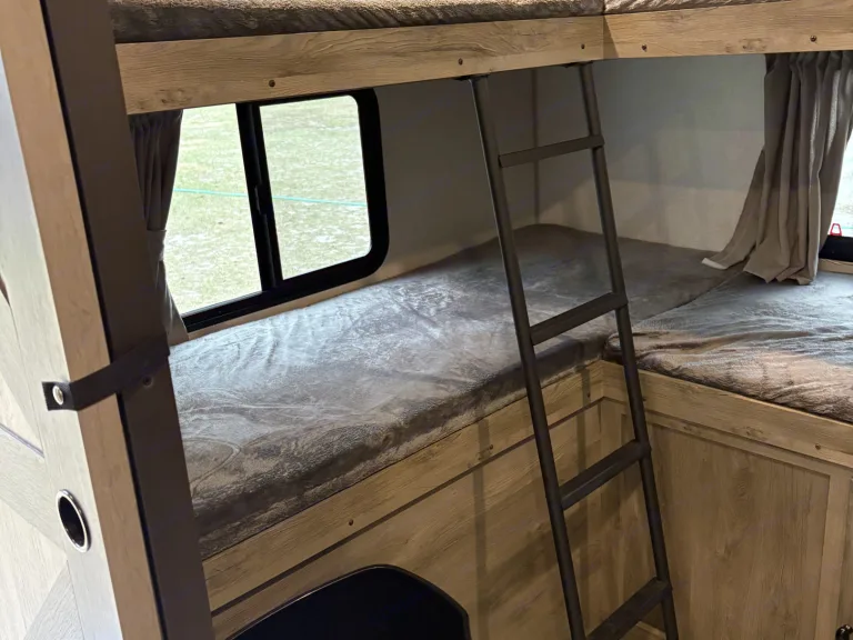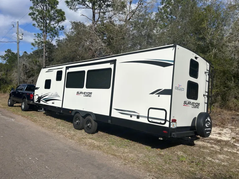 Clean Surveyor Legend travel trailer. White exterior with modern design. Walk-thru large bathroom a full size shower , sink, and comfy bunk room ! . Sleeps 8-10 . This is a very nice place to stay ! What's includedVehicle come start with pillows, blankets, sheet sheets, towels, washcloths, toiletry items, coffee maker, pots, pans, dishes, plates, and utensils !