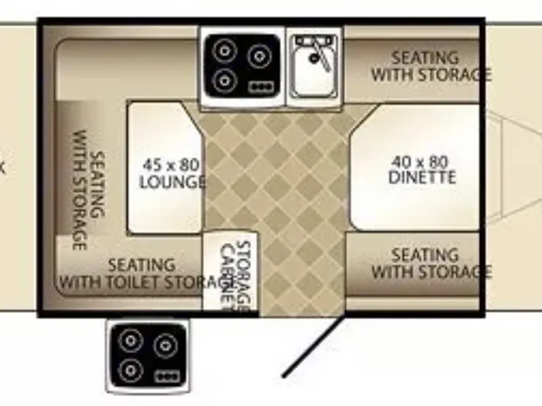 U-shaped dinette plus bench dinette with under seat storage
