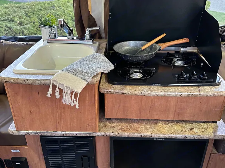 A sink with 19 gals or 71.9 l fresh water tank