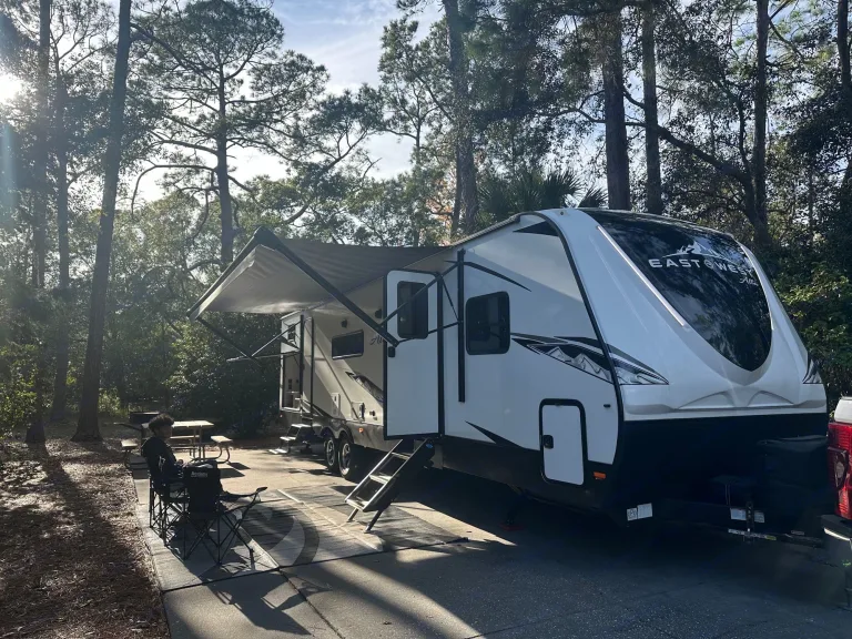 Brand new, 2023 East to West Alta 3150 KBH Travel Trailer. This camper is luxurious and spacious at 37.8 ft and ready for a family to occupy it! Two bedrooms, including a rear bunkhouse for the kids, and the front room has a King bed for mom and dad. Sleeps up to 10 people with plenty of space.This camper is designed for the family that wants plenty of room and extra comfort. This fully furnished camper is a family favorite with two separate closed-off bedrooms. This double slide camper is a bunk house unit with a spacious back sleeping and living area with its own convertible sleeper and entertainment area with TV. The spacious living room of the camper has an entertainment center with a 40-inch smart LED TV with a Bluetooth FM CD/DVD stereo with indoor/outdoor speakers and a fireplace. A full kitchen (refrigerator, microwave, oven, stove) and a walk-in pantry! The living area has a sleeper couch (with a simple one-hand pull setup) and a dinette table that folds into a bed. The front of the camper has a King size bed with a smart TV and USB ports. The outside of this camper features a power awning with a LED light strip, a kitchen with a refrigerator, sink, induction stove, and 32-inch outdoor TV. 2 AC units for added comfort.Indoor amenities: towels, bed linings, all table setting, coffee maker, water filtration system, all the cookware (pots, pans, mixing bowls, measuring cups, cutting boards, etc.), toaster, small library, board games, and hand soap.Outdoor amenities: include folding chairs and tables, outdoor rug, grill, outside fridge, and LED lighting under the large awning. Outdoor speakers are connected to the internal audio system.Just bring a toothbrush and your clothes.If you have any questions, please don't hesitate to ask. Please note the pickup and drop-off times are defaults. We adjust them based on the needs of the renter. Please let us know when you want a drop-off and pickup time.We Deliver and set up everything for you.What's includedConvenience items: