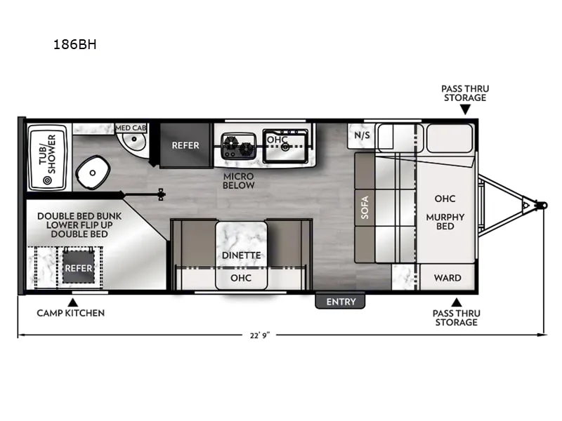 •Convenience items included: Electric adapters, hoses, and accessories for almost any hookup scenario, USB ports in various locations throughout, Bluetooth speaker, wireless RV leveling system, leveling accessories, powered tongue jack, and more.
