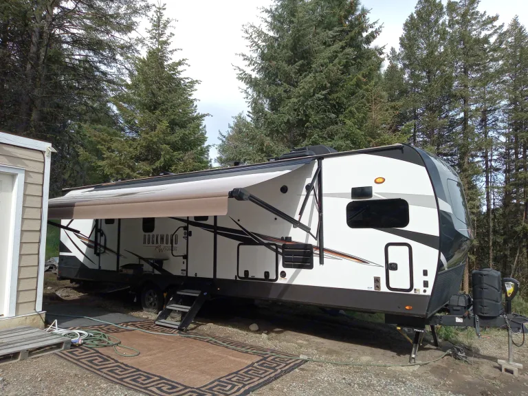 Gordon's 2021 Forest River Rockwood Signature top of line unit, king bed,