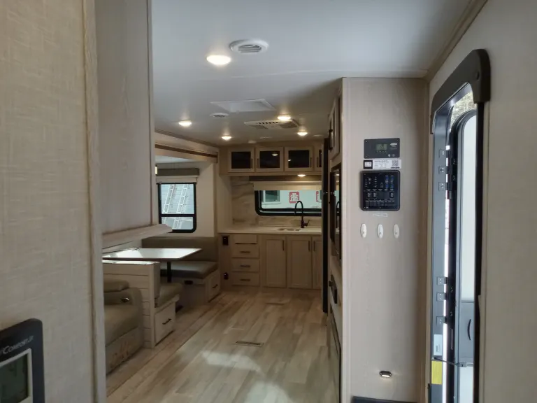 Top of the line model, like new, front kitchen, rear king bed, flat screen TV, 2 slides, theater seating, power stablisers, outside propane griddle, ducted heat and AC, many more accessoriesWhat's includedAn outside mounted propane griddle is included, linens supplied for king bed, pull out sofa and dinette bed, towels and face clothes included as well. Kitchen is fully equipped including microwave and toaster oven. The fresh water tank will be filled ON REQUEST. Camp chairs, outside mounted propane griddle, outdoor mat, some games.RecommendationsBring beach towels, toiletries, shampoo, clothes, medications, and of course food & beverages etc.Other things to noteJust to confirm, propane to be refilled, and tanks dumped otherwise an extra charge of $50 for each propane tank and $50 to dump tanks will be applied. We recommend bringing drinking water.