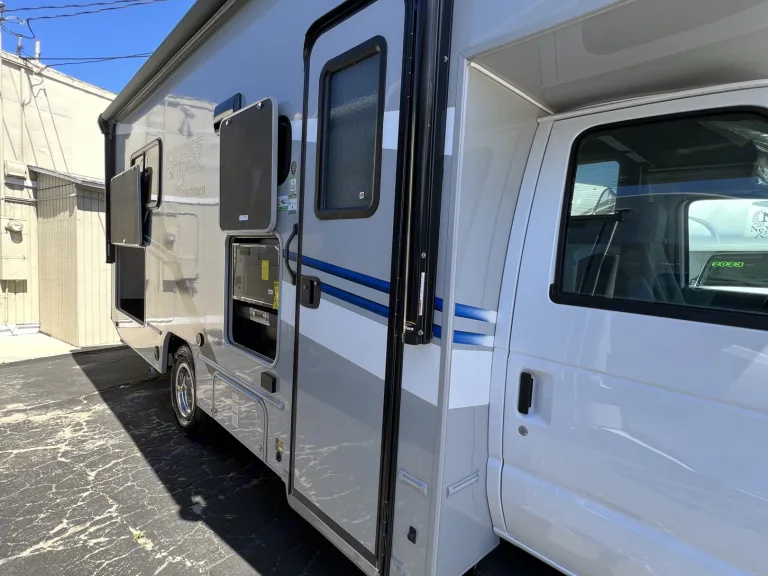 WiFi RangerYou will have a comfortable place to dine and rest in this motorhome! There is a 39" x 95" bunk over cab and a rear corner queen bed with overhead cabinets and a rear storage area nearby it. After a long day of traveling, freshen up in the rear corner bathroom with the shower and then prepare a delicious home cooked meal with the three burner cooktop. The countertop extension will make it easier to prepare your meals too. The 46" x 76" U-shaped dinette is not only great for enjoying meals and playing card games, but also for transforming into an extra sleeping space. The 16' power awning will protect you rain or shine and the exterior storage area is big enough for all your gear!