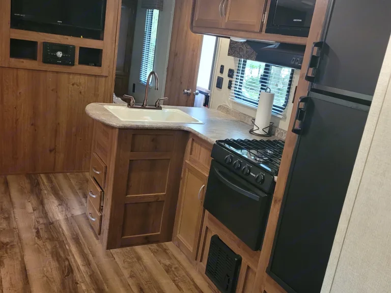 The big girl has room for everyone to enjoy! Sleeps 8, with a full outdoor kitchen!So much room for activities! A queen bed with its own TV for grown ups, and a cool clubhouse back bunkhouse with 3 bunks and a *door* to put the kids to bed early. The dinette and couch fold flat for extra sleeping space.The outdoor kitchen is amazing- sink, fridge and stove, set up outside and never miss the fun! Or get your whole grilling station set up outside. Keep your beers cold and within reach!The rig can be delivered and set up or picked up if you have appropriate towing capacity. It includes bedding, towels, tp, coffee pot, and basic dishes.What's includedLinens, tp, dishes and silverware, coffee potRecommendationsMy favorite camp spots are Fort Wilderness at Disney, Coral Sands in Flagler Beach (right on the water) and Sante Fe, NM. We loved rafting the Rio Grande! Also, Lake Tahoe with its gold, glistening water is magical!Other things to noteNo smoking, not allowing pets at this time