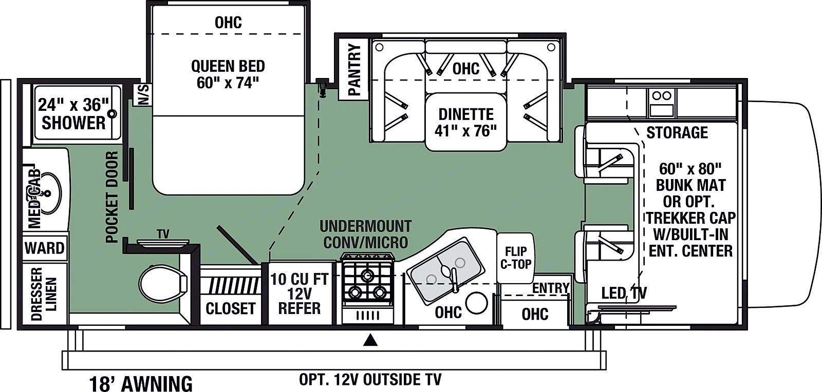 Undercounter trash compartmentQueen-Sized Overhead Bunk: