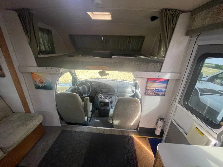 Other sleeping areas include, over driver seat sleeping area, and pull out couch.