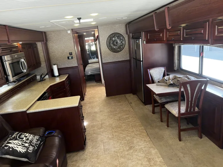 Well maintained Motor Home with all the Fun Stuff! 4 Slides for lots of Room, Power Recliners for relaxing at the end of the day and 2 A/C unites to keep your cool Plus an electric Fireplace to warm You up when it's cold outside! Do your laundry in the washer and dryer, watch your favorite shows and teams on the 2 TVs using the provided Roku, keep your food and drinks cold in the ice cold refrigerator and freezer. There is a Huge Awning on the side to provide shade, automatic levelers when you park, and a cell enhancer for your phones, and the Roku on the tv! Very cold dash air to keep you comfortable when you drive! Plus run all the roof A/C and 110 plug ins with the generator as you cruise down the road!! No more that 2 pets and they each must be under 20 pounds.What's includedSilverware/plates/glasses and cooking utensils are all provided. Towels and wash cloths are also included. The Coach has a washer/drier also.Recommendations• Just bring your clothes, food and drinks and enjoy all the comforts of Home as you travel down the Road! Twin recliners to relax and watch Roku TV or a DVD in the living room or bedroom!Other things to noteWe do not allow pets and if during the cleaning, after the coach is returned, we find evidence of pets there will be an additional $250.00 charge added to the trip.