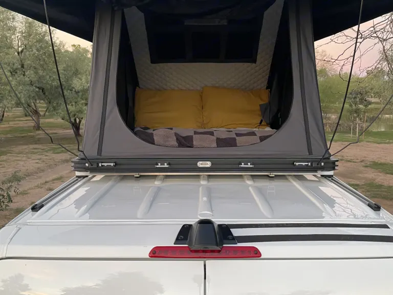 Ready to take your motocross game or outdoor adventures to the next level? This custom-built Mercedes Sprinter Van is purpose-designed for racers, riders, and thrill-seekers who need a reliable, comfortable, and fully equipped basecamp on wheels. Interior features 2 captain chairs and a bench seat with 4 additional seat belts so it is comfortable for the whole crew. Van has a roof-top tent with a queen mattress that comfortably sleeps 2. We also have a queen mattress available upon request that can fit inside the back section of the van.