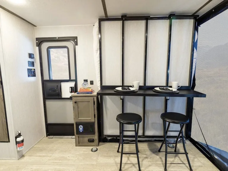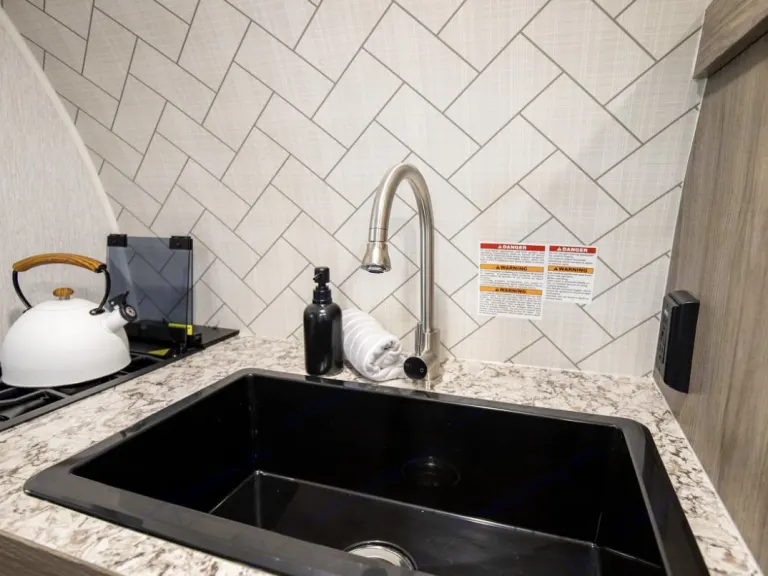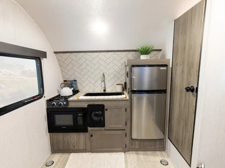 Get Ready For Adventure With The Boulderback, One Of The Only SUV-Friendly, Single-Axle Toy Haulers Featuring A 10'6" Garage, Fold-Down Bed, Pop-Out Tent, Full Kitchen, And Bathroom.It’s an excellent choice for adventurers who want to explore the great outdoors without upgrading their vehicle or dealing with the challenges of towing a large camper. It can sleeps up to 4 people and offers the functionality of a full-size RV in a lightweight, compact design that’s easy to tow with an SUV.Spacious Interior:Despite its compact size, it provides impressive space. The fold-up bed (size 54X74) and pop-out tent (size 46X81) expand the interior, creating a roomy and comfortable environment. Keep the back ramp door open with the magnetic screen in place to let in a refreshing breeze and stay connected to nature.Lightweight and Easy to Tow:With a UVW of just 2,560 pounds, the Go Lite is exceptionally lightweight, making it towable by smaller vehicles like SUVs, compact trucks, and some capable minivans. With an exterior length of only 16'2", its compact design allows you to access tight camping spots that larger RVs simply can’t reach.Bathroom:  Wet bath with residential height foot pedal toilet and detachable shower head.Full Kitchen:The Go Lite’s kitchen is thoughtfully designed to bring the comforts of home on the road. It features an 4.4-cubic-foot refrigerator and freezer, a full-sized residential farmhouse sink, a microwave, and a 2-burner stove, making cooking easy and enjoyable. Flip-up dining bar/desk—ready for you to enjoy breakfast with a view of the great outdoors (includes 2 stools).Adventure-Ready Design:Built on a custom chassis tailored to its floorplan, the Go Lite Boulderback 14 offers extra support where it’s needed most. With an adjustable axle and heavy-duty off-road tires, this toy hauler is ready to take on rugged terrain and go wherever your adventures lead.
