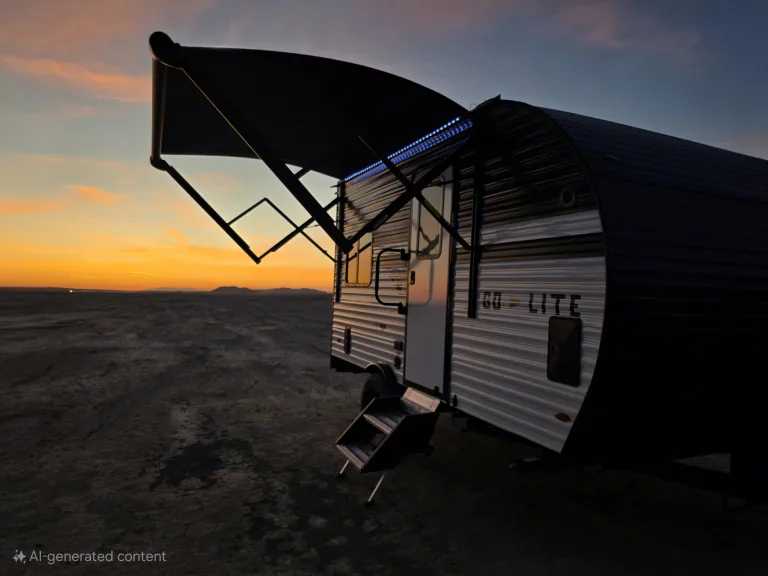 Awning provides shade on hot sunny days and a place to relax with friends and family!
