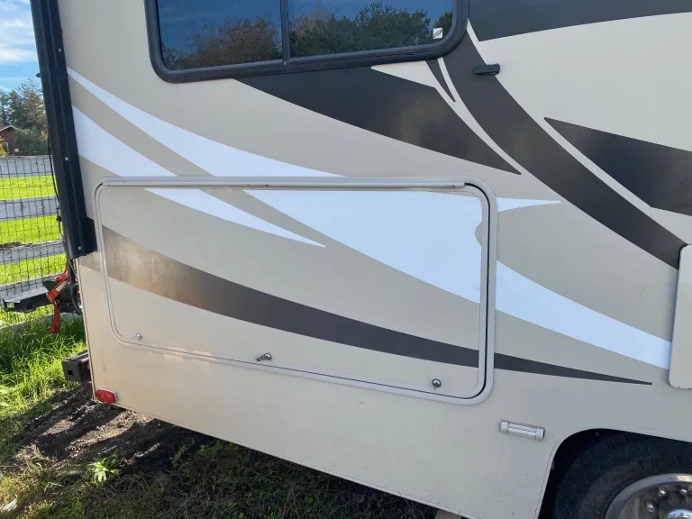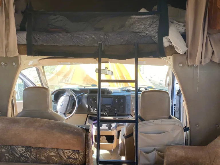 Features a kitchenette, microwave, tons of storage. there is a queen bed, a bed above the driving cabin, and the table turns into a bed for a child. This C class is a great size, easy to drive and park. It has hookups for water and sewer at the campsite. Comes with kitchen items for camping. A great rv for your next road trip.What's includedKitchen items for cooking, mattresses bring your own linens. camp chairs, maps, an battery starter.RecommendationsGreat rv for shorter weekend at beach like Dillon Beach, Doran beach, or longer trips as its very easy to drive and park.Other things to noteNo pets, no smoking, no festivals.