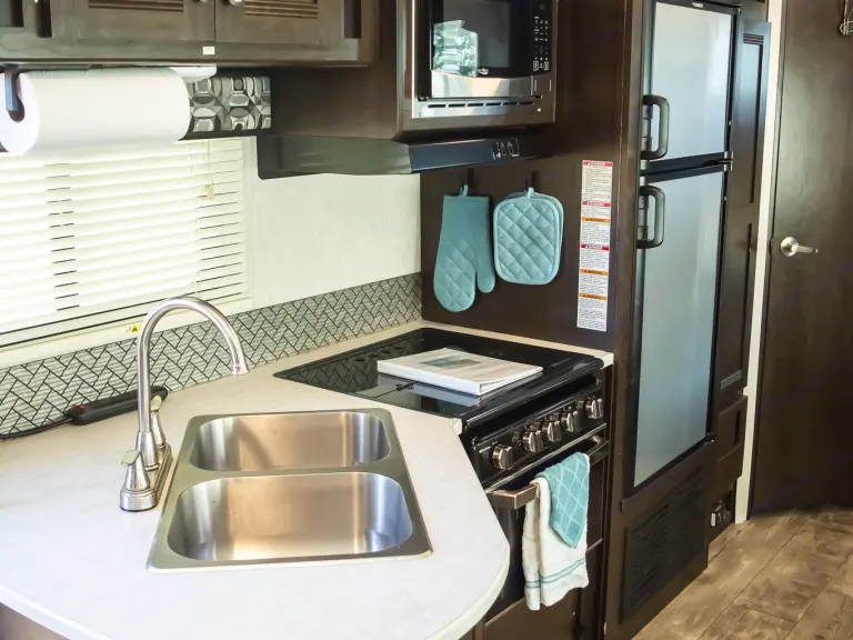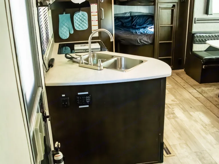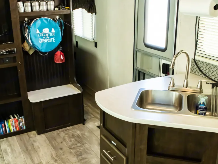 Modern Comforts – Ice-cold A/C, propane heat, Bluetooth stereo, DVD player, and a roomy bathroom with a full shower.