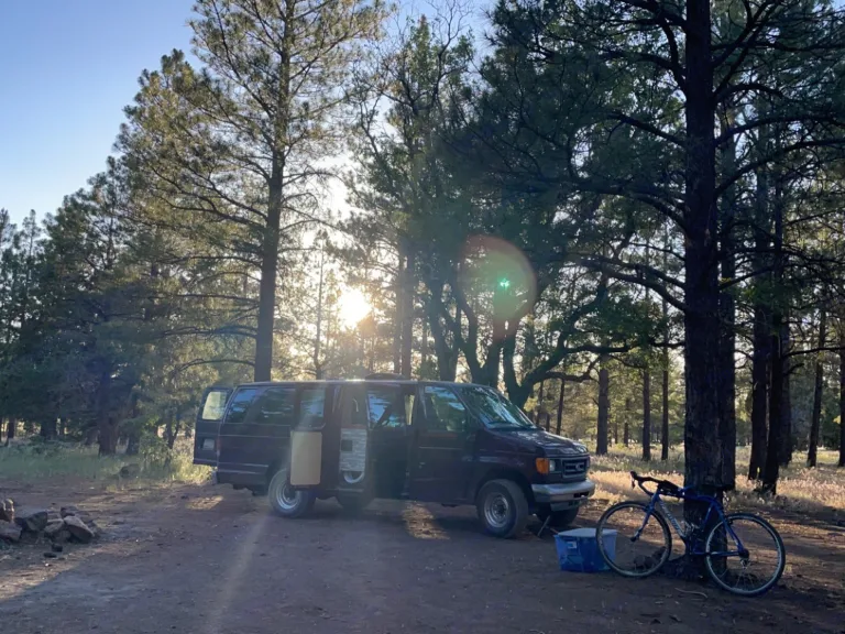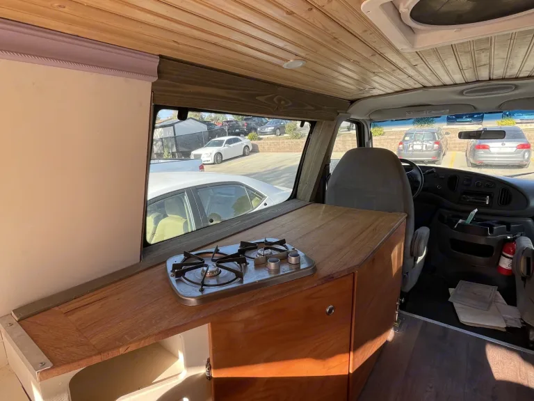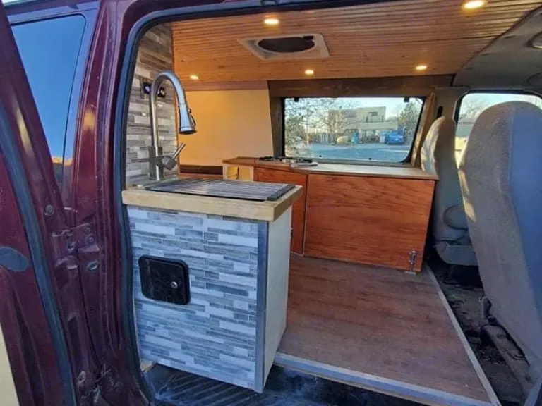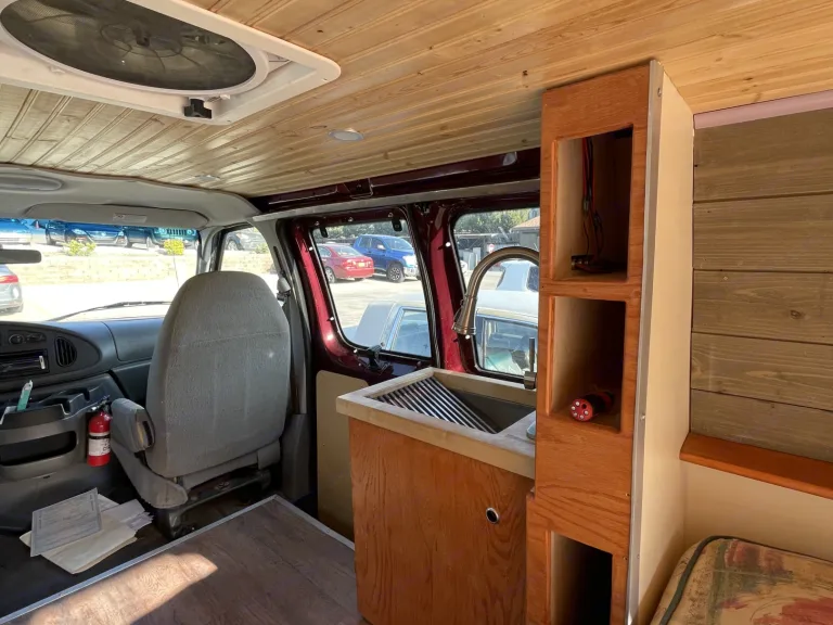 This 2006 Ford E350 has everything you need for your adventure! The van is complete with a full bed, plenty of storage, a 25 gallon water tank, complete solar set up, and a kitchen with a fridge and stove. It seats/sleeps two. What's includedThe van can come with fresh linens, cookware, utensils.