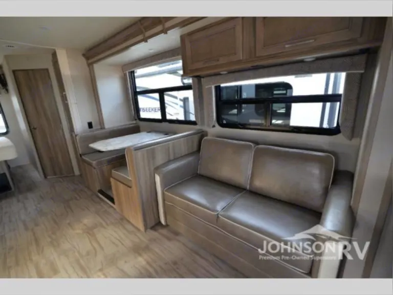 Other features include a one-piece seamless fiberglass front cap, rear back-up camera and monitor, and an interior command center. For your comfort and safety there are seat belts installed in each seating position, driver and passenger air bags, as well as power anti-lock brakes.