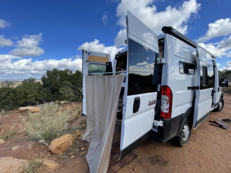 See all Arizona and the Southwest has to offer with us!Gus the Adventure Bus is a 2021 Ram ProMaster high roof cargo van professionally converted into a camper by Boho Camper Vans in Tempe. Designed to take two people just about anywhere, Gus the Adventure Bus is the perfect combination of RV and car.It’s easy to drive: Gus is equipped with the most up-to-date safety features, including a rearview camera, blind-spot detection, cruise control, and large mirrors. With heated, adjustable seats, climate control, and a bluetooth entertainment system, long road trips are a breeze.Once you park for the night, Gus has just about all the comforts of home. You can sleep comfortably on the full-sized memory foam mattress, cook meals on the integrated propane stove, relax on the bench seat, or swivel the front seats around and turn Gus into a little living room.Gus has a 300 amp-hour lithium battery bank, which is powered by two solar panels on the roof and a heavy duty alternator. Any time the engine is on, or the van is in the sun, the batteries are charging. 300 amp-hours is a ton of power -- we have yet to deplete the batteries below 60% on multi-day camping trips! The batteries power all the lights and fans, as well as the electrical outlets, refrigerator, furnace, and water heater.There’s a 25-gallon fresh water tank, which provides more than enough water for basic needs over a few days. It feeds the kitchen sink and the heated outdoor shower using an electric pump. On cold nights, an integrated, gasoline-powered furnace heats the van up nicely while barely sipping fuel from the van’s gas tank. And on warm days, the two ceiling fans can circulate air quickly, efficiently cooling the van.Every rental comes with basic kitchen supplies, towels, camping supplies. If you're a coffee or beer drinker, let us know, and we'll hook you up with some local coffee or beer, too!Arizona is a playground - enjoy it with Gus!Follow us on Instagram @gus_theadventurebusWhat's included2x camp chairs, camping table, steel campfire ring, linens (sheets, pillowcases, blanket, microfiber camp towels), 4 bamboo fiber plastic plates, 4 bamboo fiber plastic bowls, silverware, camping pot, saucepan, kettle, pour-over coffee maker, collapsible colander, measuring cups and spoons, Cuisinart kitchen knives, cutting board, wine key, bottle opener, cleaning supplies.Airport pickup from PHX Sky Harbor available on request. Delivery and pickup within Maricopa County available. RecommendationsArizona and the Southwest are your oyster - we've taken Gus to Sedona, Flagstaff, the Grand Canyon, Moab, along the Utah National Parks Grand Circle Tour, and all the way up to Telluride, Colorado. We plan to take it up the Pacific Coast Highway next year. Other things to noteDogs allowed upon approval with additional fee. Festivals allowed with additional fee. No smoking of any kind allowed in the van. For insurance purposes, the van is not allowed to leave the country (no Mexico or Canada). Maximum height is 9'6" (9 feet, 6 inches), so the van can't go through any drive-thru lines or enter parking garages.Pickup/Dropoff time: 2 p.m. (early pickup / late dropoff available for additional fee).