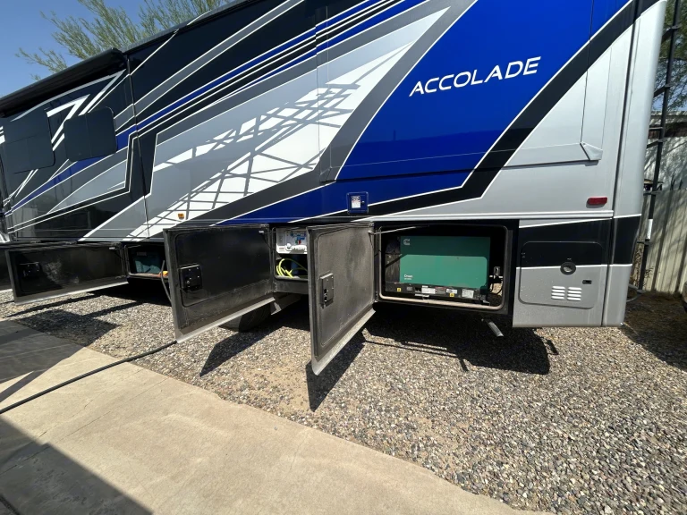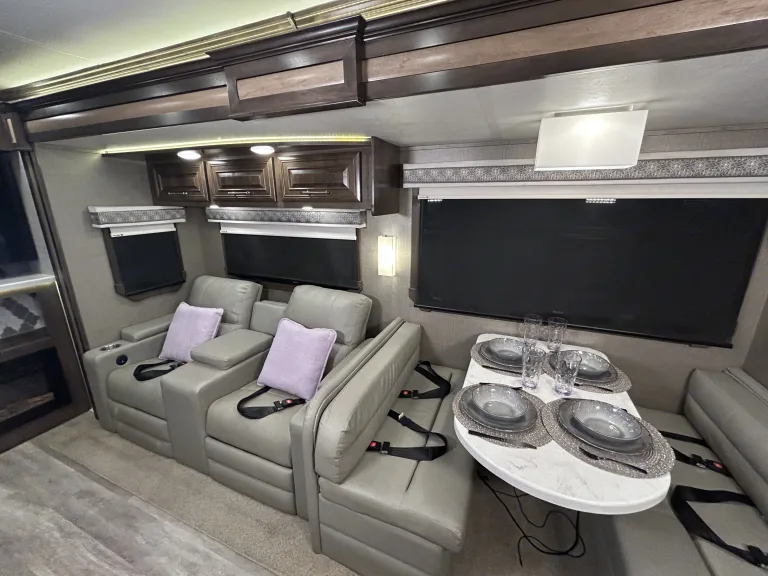 2022 Entegra Coach Accolade XL 37LReady to trade hotel hallways for saguaros, Sedona vortex hikes, and Grand Canyon sunsets? Book the Accolade XL 37L today and elevate your summer escape to true ultra-luxury. Yes, it looks exactly like it does in the photos. Get behind the wheel of our jaw-dropping Accolade XL and watch the summer heat melt away. Built on a rock-steady Freightliner S2RV chassis. Three giant slide-outs, an enormous powered awning, and frameless panoramic windows blur the line between indoors and out, giving you a luxury-hotel vibe wherever you park. We do recommend previous large diesel vehicle driving experience with this RV.Room for everyone. Sleeps up to 8 with a king master suite, twin bunks, cab-over loft, and convertible sofa/dinette. Chef-worthy galley. Residential 18 cu ft fridge, convection microwave, induction cooktop, and solid-surface counters make camp cooking a breeze. Spa-inspired bathroom. Endless on-demand hot water plus a stacked washer/dryer keep you fresh no matter how dusty the trail. A 32″ Hdtv, Bluetooth sound bar, and push-button awnings create an open-air lounge for sunset movies or game day.FOR Safety, we recommend renters have prior experience with Super C RVs, trucks, or similar large diesel vehicles.Hydraulic auto-leveling jacks and full-vision cameras mean you’re leveled, stable, and parked like a pro in minutes. Dual A/C units and reflective window shades keep the cabin chill even when the Sonoran sun is blazing.Hotel-quality linens, pillows, and plush towels Fully stocked kitchen, 24/7 roadside assistance plus step-by-step video guides for every system.Please note: This RV is not available the Burning Man Festival.