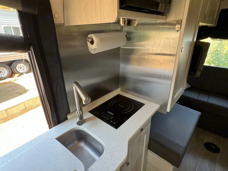 - **Kitchen**: Fully equipped with a refrigerator, microwave, one-burner induction stove, and sink. Cook your favorite meals on the go!