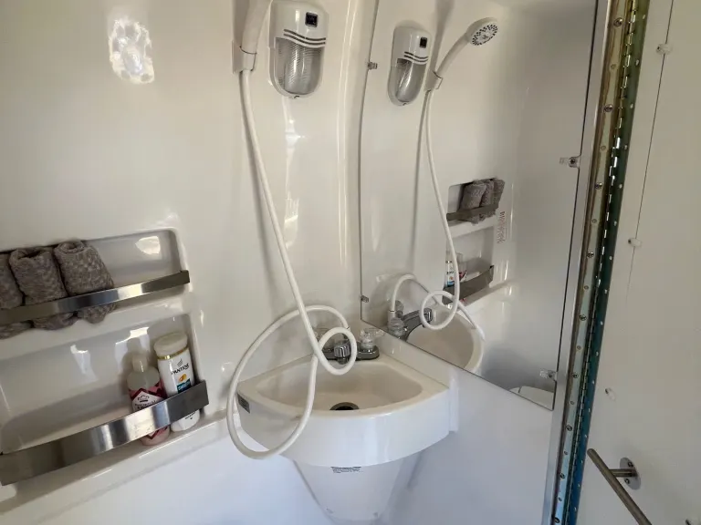 - **Bathroom**: Onboard bathroom with a shower, toilet, and sink, ensuring convenience and privacy.