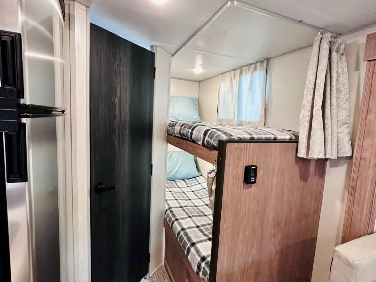 The Perfect Glamping experience is awaiting for you! If you have a passion for the outdoors, you can make your way to The Great Smokie Mountains and camp among the wild! We can deliver it to your new campsite with full hookups for a leisure experience and set it all up and ready for the memories to begin! Brand new, family friendly, the best camper for easy travel! It’s short, but spacious. It expands out to give more room and has a set of bunk beds. This Nobo sleeps up to a total of 6!WE DO Delivery Only. DO NOT Allow customers to pull camper. Delivery includes dropping off, setting up, take down and bringing back camper so it’s less that the customer has to worry about. What's includedWe have included some of the basics you will want on your trip. Items for the bathroom such as towels and wash clothes. Items in the kitchen include cups, plates, bowls, silverware, hand towels, and grill cooking tools. We also provide bed coverings such as sheets, comforter, and of course comfy pillows. For the bunks we provided a softer material for the kids to feel extra cozy! And last but not least a coffee pot for that extra kick in the mornings! Get the cameras ready!!RecommendationsCamping at The Top Travel Destination in the US, Gatlinburg, Pigeon Forge, and The Great Smokie Mountains in general is one of the best places to really get in touch with your inner travel spirit. Whether that be with full hook ups or dry camping. Outside of the campsites there are a multitude of things to enjoy! First and foremost the well known Dollywood and Splash Country, having a multitude of rides and games for the family to enjoy. Secondly, I recommend The Anakeesta, taking the skii lift up the mountainside where the major fires took place and enjoying dinner with a view, roller coaster that rides you along where fires were burning rapidly, and grab a few drinks at the bar and walk around with them and ice cream with the kiddos while there! Enjoy the rope bridge through the forest at dawn, being lite up at darker hours is a magical experience. All three locations will keep children busy with lots of fun and memories to be made! Aside from this are several rides, shopping, and restaurants to experience all within just a few miles on the Pigeon Forge strip and can even enjoy site-seeing from the car with a lot of wows!Other things to noteThe RV is NOT on a campsite permanently. This is the fun part, you can choose anywhere. We will deliver it to the campsite of your choice, with mileage fees included. See pricing for that information.Please be mindful of the few rules set for the rental. We have put our best thoughts and planning into this to ensure it’s clean and cozy for your enjoyment.