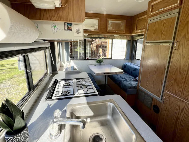 Fully equipped, Queen bed over cab, sleeping for 4 people, generator, refrigerator, propane stove, microwave, Brand NEW air conditioner, heater, water heater, interior and outside shower, extra house battery and solar panels for extended off the grid travel. RV is based on the ford econoline with a strong gas engine paired with a trailer hitch if you need to tow a trailer.Check in is at 3pm and check out is at 11 am. This is allows for us to clean & prepare the vehicle for the next renter. If you are wanting the RV outside of these hours we can offer a half day rate of $75 to ensure your pick or drop time is accommodated. (7am-11am OR 3pm to 9pm) We must block out rental dates to make sure you can meet your times.• Extras include: Yeti cooler, foldable table, 2 inflatable paddle boards (with electric pump), floaties, spike ball, charcoal grill, camping chairs, camp loveseat, infinity lounger chairs.