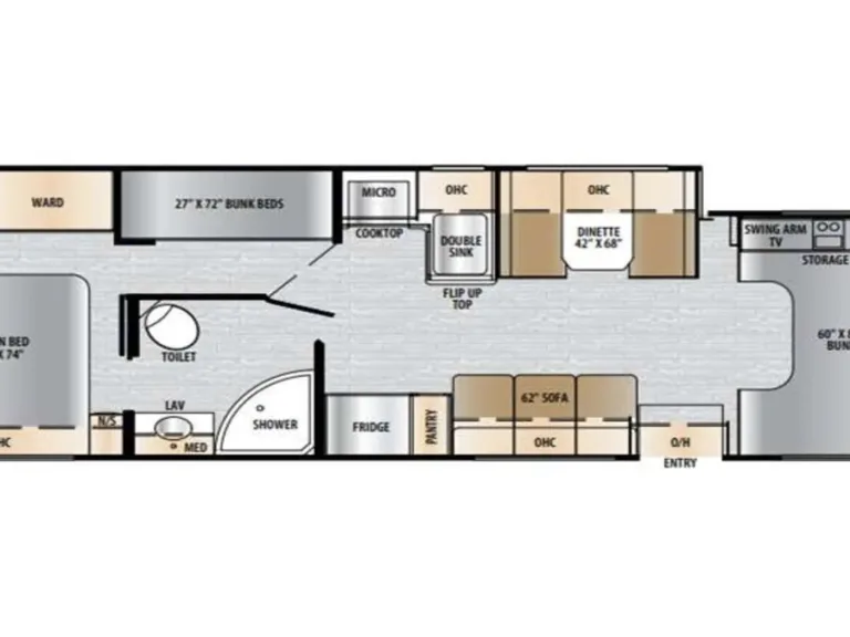 • Dual AC units, 50-amp service, and a 5,500-watt generator for ultimate comfort