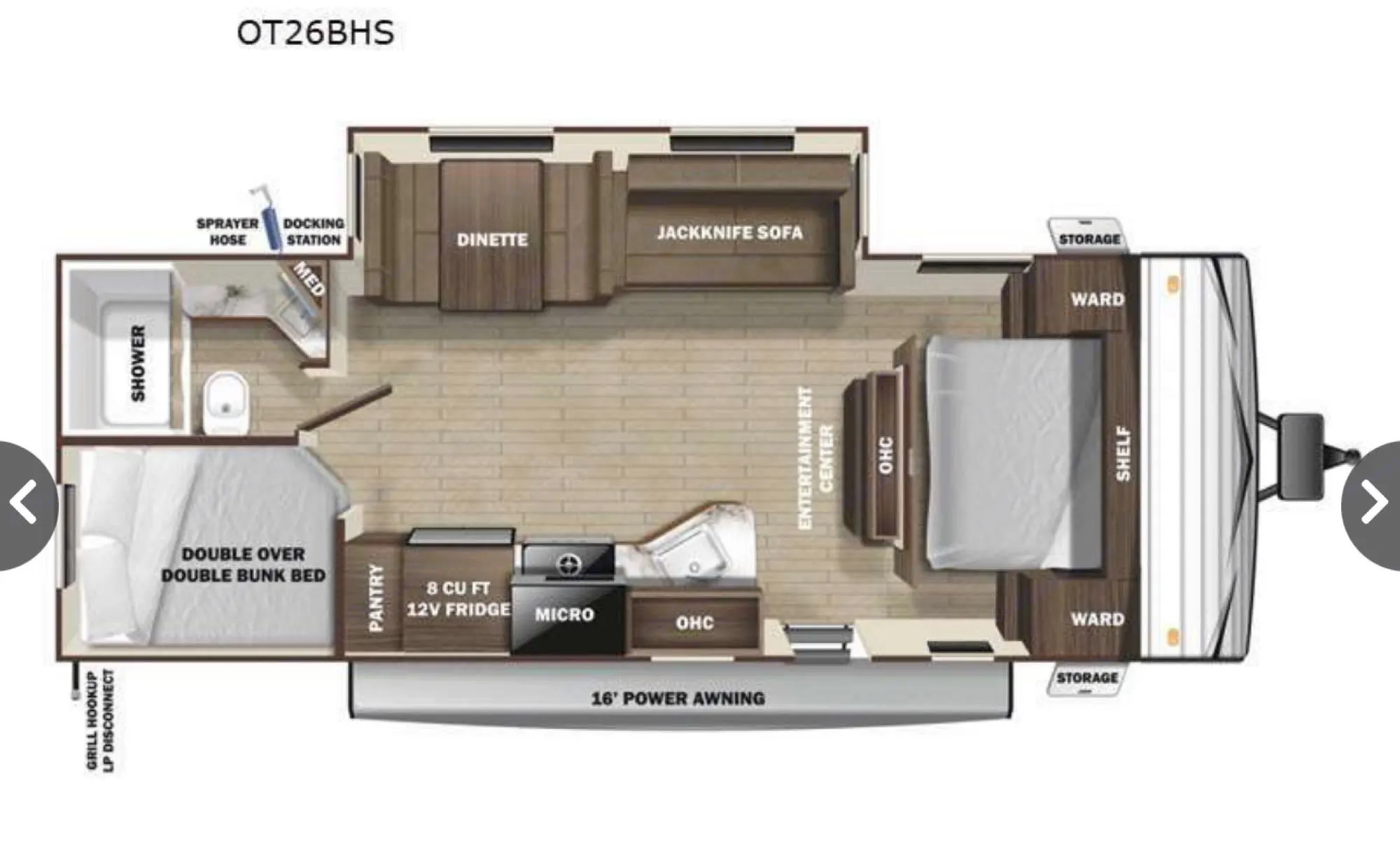 Two(2) propane tanksIt's time to upgrade your trip to include this travel trailer with more sleeping space and more comfort, and this unit is the one! The large slide out will allow the dog space to stretch out for a nap, and the entertainment center with an LED TV will be perfect for movie night. Grab the chips from the pantry and get comfortable on the jackknife sofa or booth dinette! You and your spouse will enjoy your own privacy up front in the private bedroom, and the kids will claim the double size bunks all to themselves!You will be able to enjoy your adventure in comfort thanks to the fiberglass insulation, the PVC roofing membrane, and the Magnum Roof System which is 50% stronger than the competition. The black front diamond plate will help protect your trailer from rock and debris on the way to the lake, and you will appreciate the stabilizer jacks for easy set-up once you arrive. These models feature residential vinyl flooring throughout, a residential high-rise faucet, seamless pressed membrane kitchen countertops, and hardwood cabinet doors to make you feel right at home. The dual axle models include even more comforts you are sure to love, such as stainless steel appliances, a comfortable bedspread, a lighted pass-through storage, and an LED TV to just name a few!Fees to know about:$50 per hr before scheduled pickup time