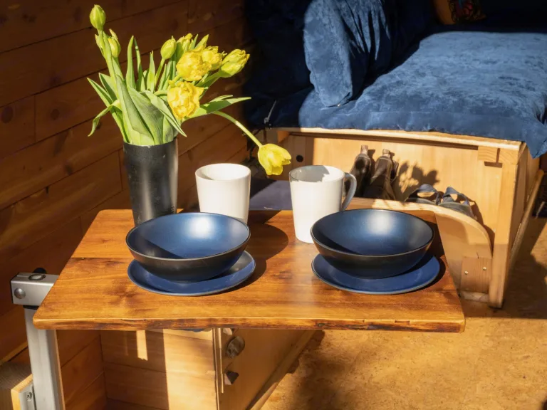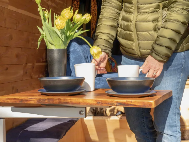 If you are thinking about a one-way rental, let us know! We'll be happy to find a solution!What's includedIncluded in your rental are fresh linens, towels, 2 camping chairs, a camping table, outdoors string lighting, coffee, tea, spices, sugar, salt, oil and vinegar, and a fully stocked kitchen including knives, forks, spoons, mugs, wine glasses, utensils, large, medium and small pots, large and medium skillets, salad bowl, colander, cutting board etc...